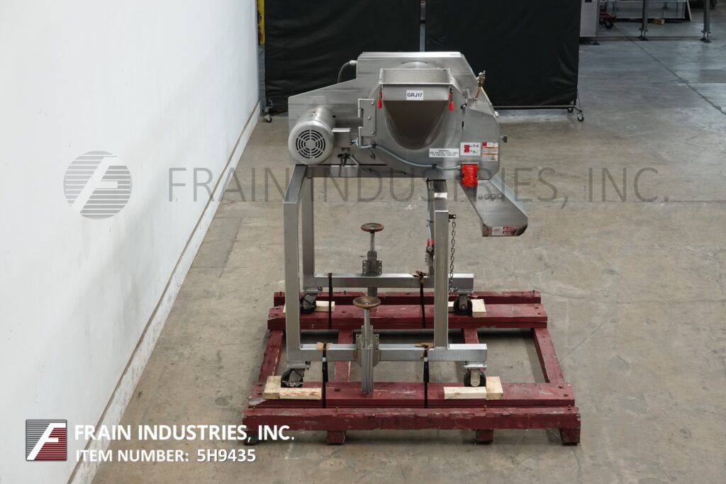 返回所有设备Urschel,Model Diversacut 2110,不锈钢,迪切尔,切片机,带状切割器,倾斜饲料,用于各种食品,每小时磅数的产品数量,具体取决于材料和应用。配备14“ x 19”产品充电,带有69英寸的充电高度,带有安全性开关的开放锁定访问门,横切开关,横切和圆形knifes,在任何尺寸中最多可接受产品,而8” x 12“带有30的排放槽“地板清除。控制面板的开始,停止和电动机停机按钮控制器具有5 hp不锈钢运动驱动器。安装在带脚轮的不锈钢底架上。