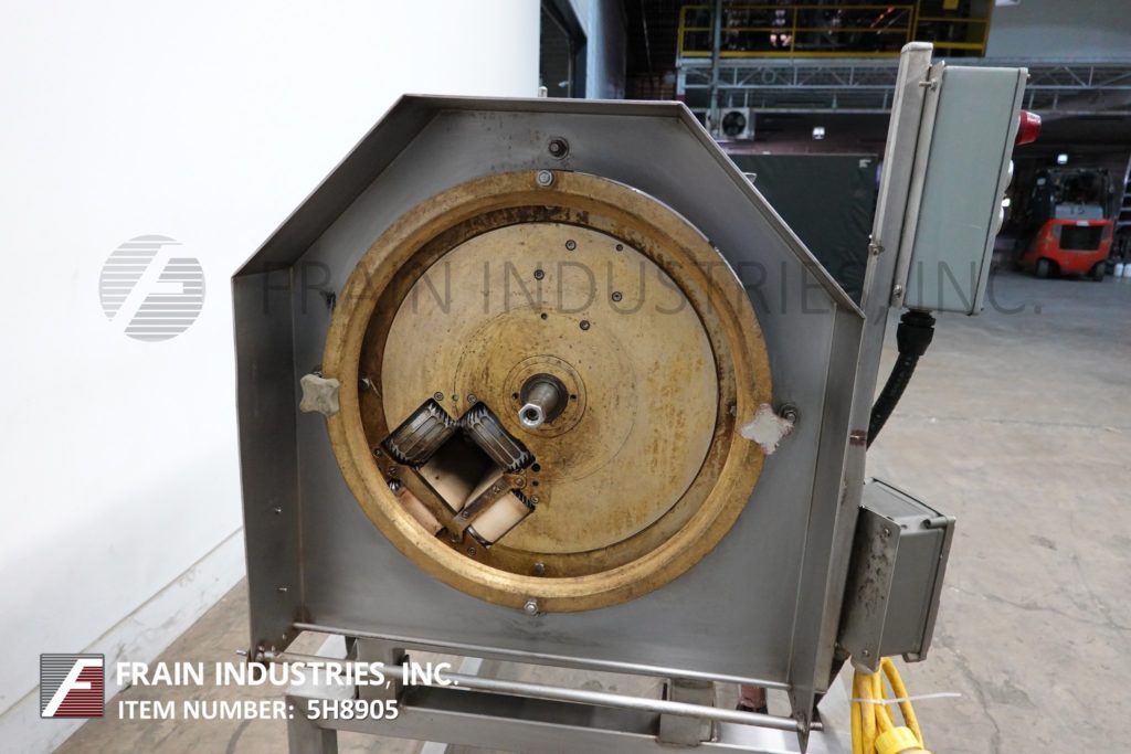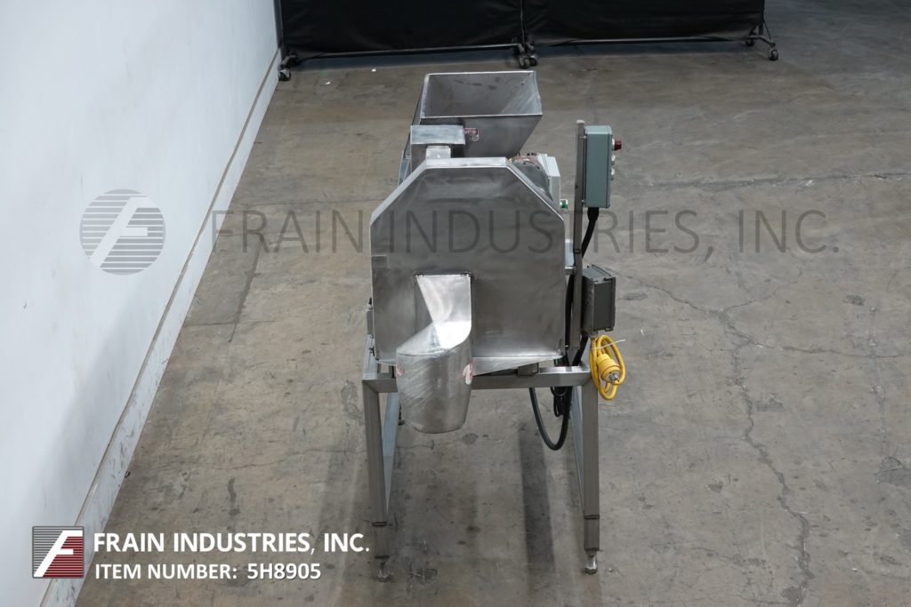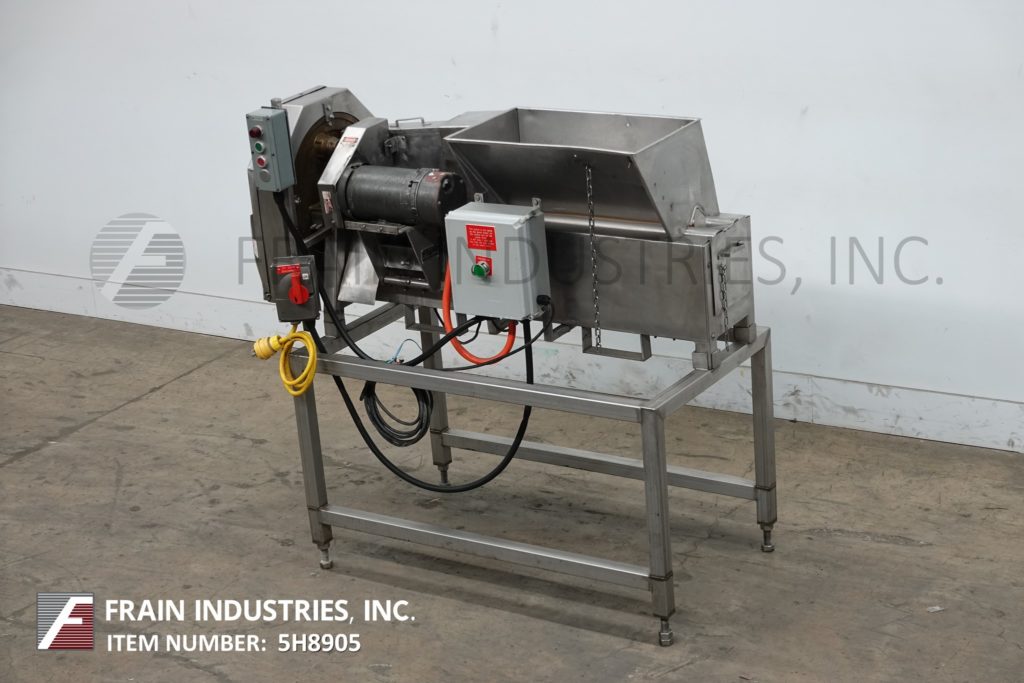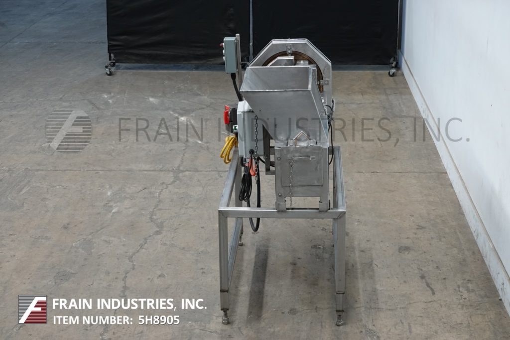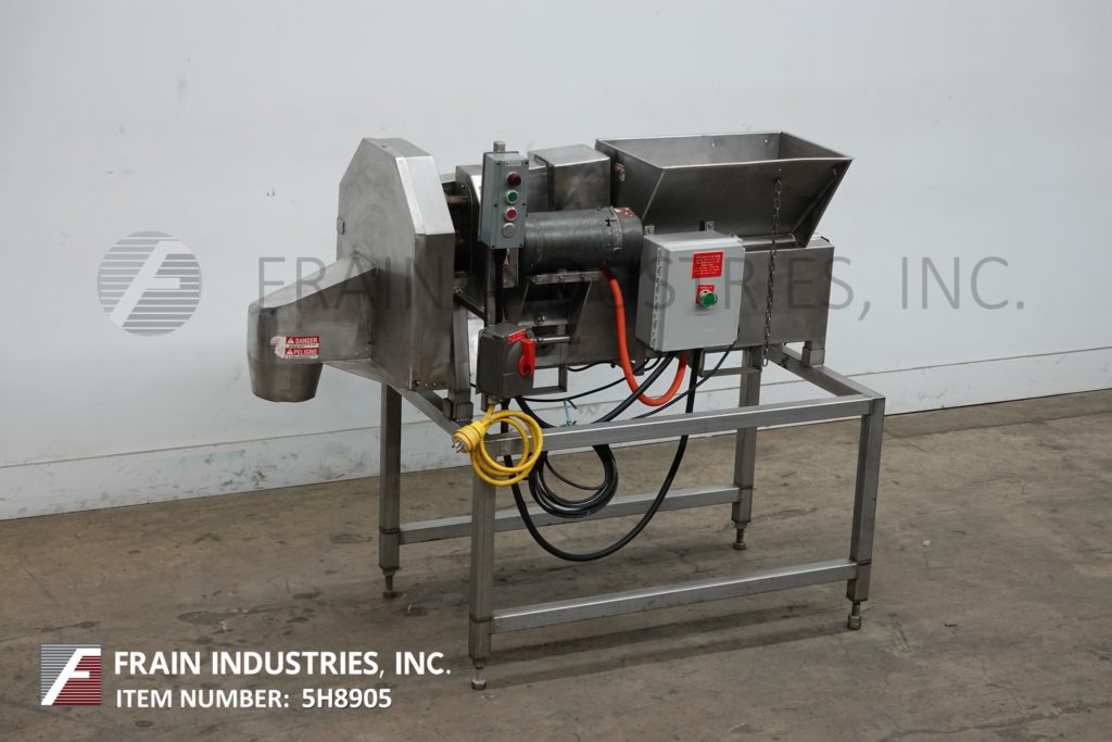 返回所有设备Urschel, OV型,自动不锈钢美国农业部切片机,用于均匀横切切片拉长的食品与每小时产品的磅数-取决于材料和应用。配备48"长的v形皮带在饲料,2½"宽产品压下皮带和7"外径放电31"地间隙。可容纳外径达2¾”的产品,可进行平片或褶皱片,并可生产1/16”至1¾”厚的平片。更换零件以适应尺寸/切割范围。安装在(4)不锈钢高度可调腿上。