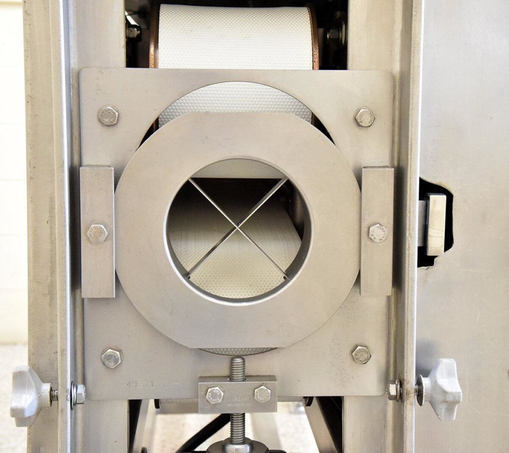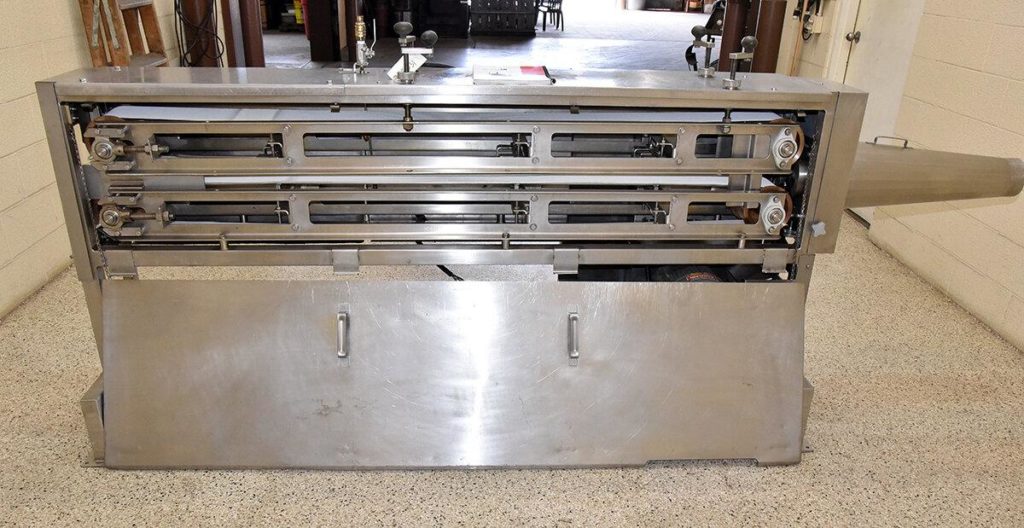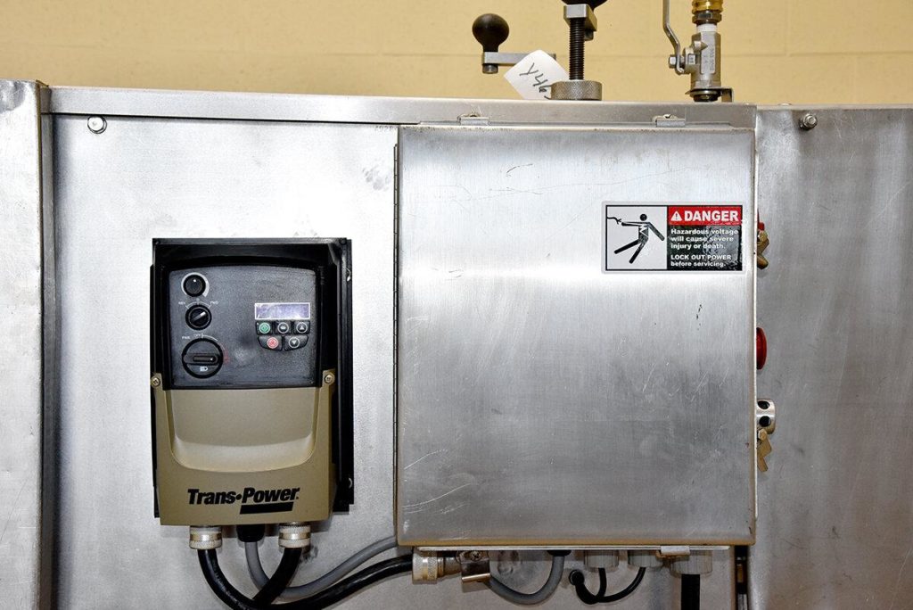 返回所有设备URSCHEL,型号VSC,自动限幅器为均匀的段,板坯和带材切割,以每小时产品的磅 - 取决于材料,应用,机器配置和类型切口。的直径。配备5" 接受产品多达4" 宽的顶部和底部产品传送带用41/2“ 直径的产物切割/排放口。控制面板已经启动,停止,紧急停止按钮和瓦里速度位指示。安装在不锈钢钢基体框架与联锁安全门。