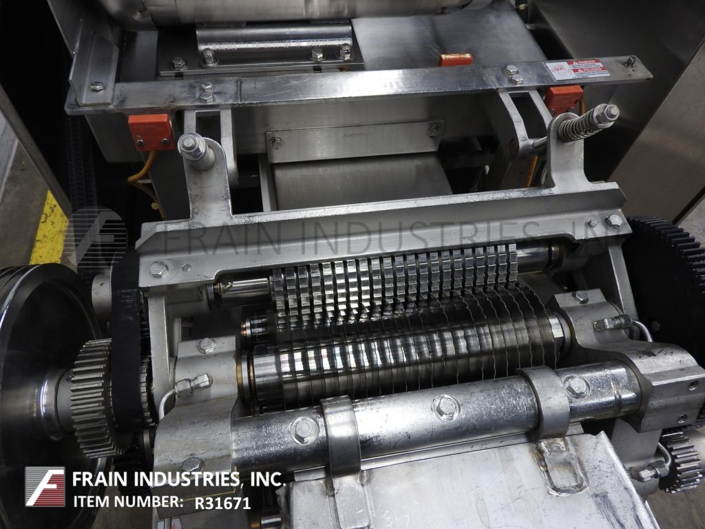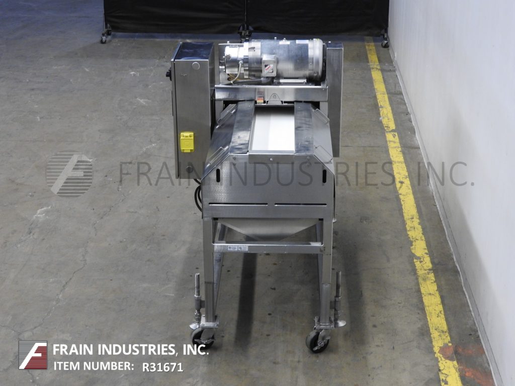 返回所有设备Urschel Model M,不锈钢,皮带供给,Dicer,碎纸机和带材切割机设计用于肉类产品,并能够从500至4,500磅/小时的生产率 - 取决于材料和应用。能够从3/16“到3”的条带切割,并从1/8“到4”的交叉切割。配备有32“x 9”装载区域,馈送带上和可调节的饲料卷,允许在3/8“至1”的所有厚度上的正产品饲料。安装在不锈钢框架上。更改适应不同配置和大小范围所需的部件。