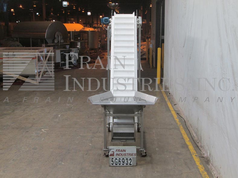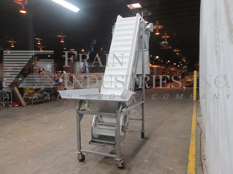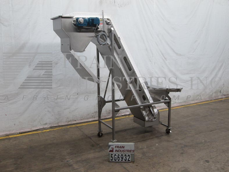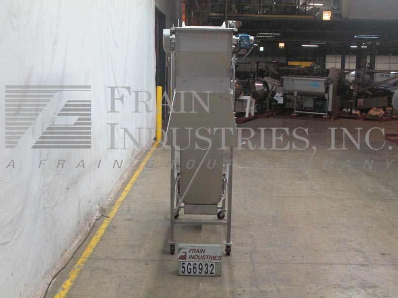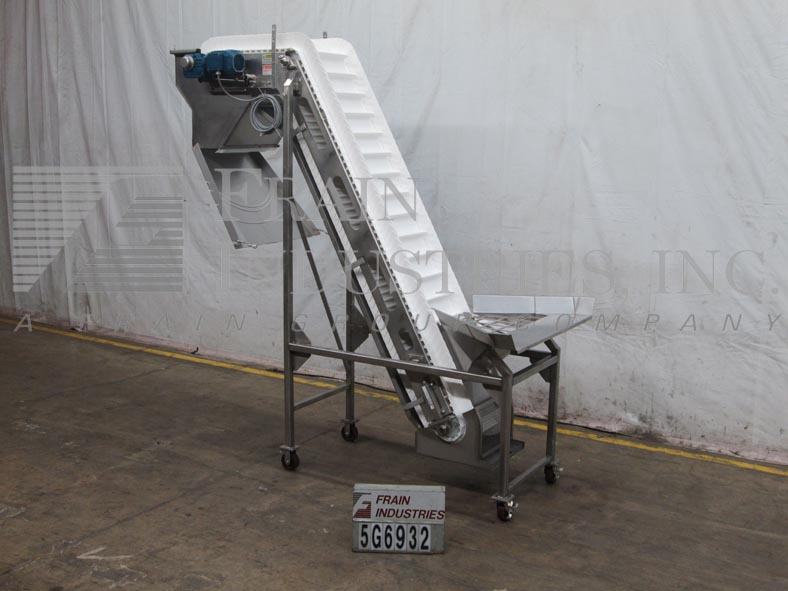返回所有设备谷焊接和机械厂,304不锈钢倾斜楔形带式进料器。在46" 深(2.5立方英尺)不锈钢产品料斗进料高度和18" 宽皮带2" 高夹板6" 设置配备有36" 宽×20" 长×13"的中心。输送机有一个98" 长的垂直行程具有32" 长的水平运行,87" 放高度。搭载一台1.5马力的车程。安装有脚轮的不锈钢基座框架上。每小时依赖于材料,应用和设备配置的产品的数量。