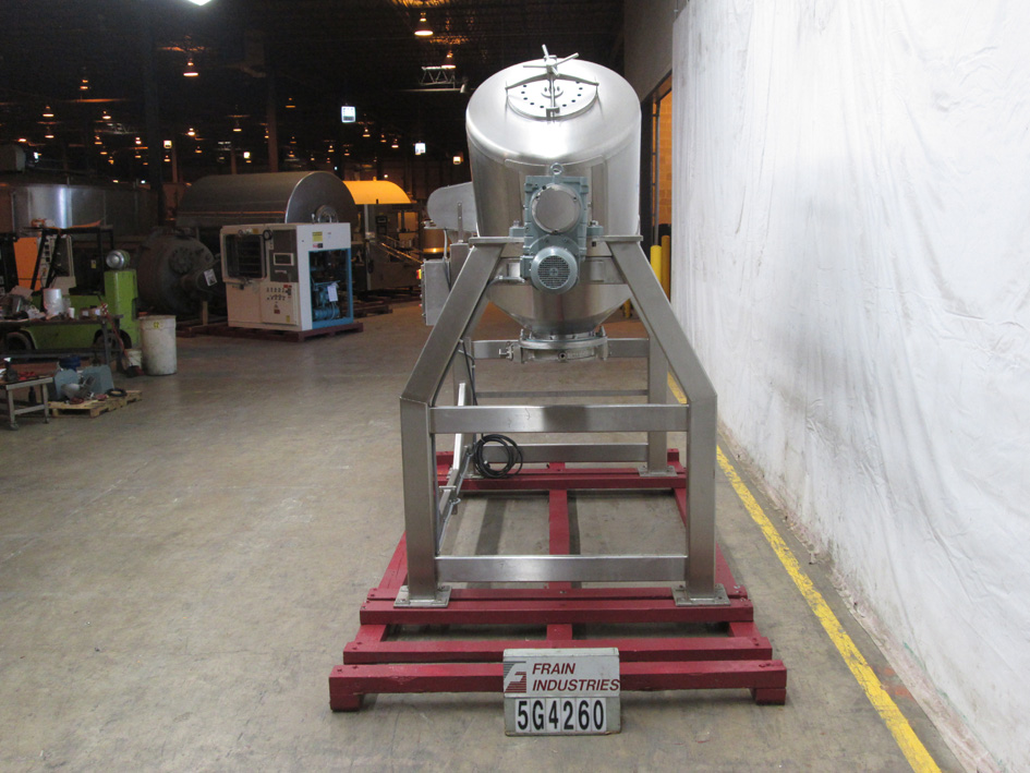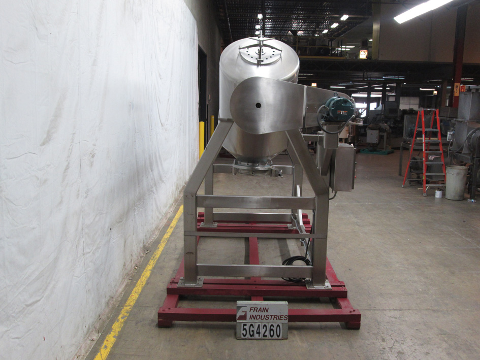 返回所有设备能力制造商30立方英尺,304不锈钢双壳搅拌机,最大产品密度额定为55磅每立方英尺。配备(2)18英寸的充电端口,可拆卸的排气盖,16英寸直径蝶式排放51英寸的排放高度,液体/固体棒,35英寸的摆动半径。安装在不锈钢底座上。