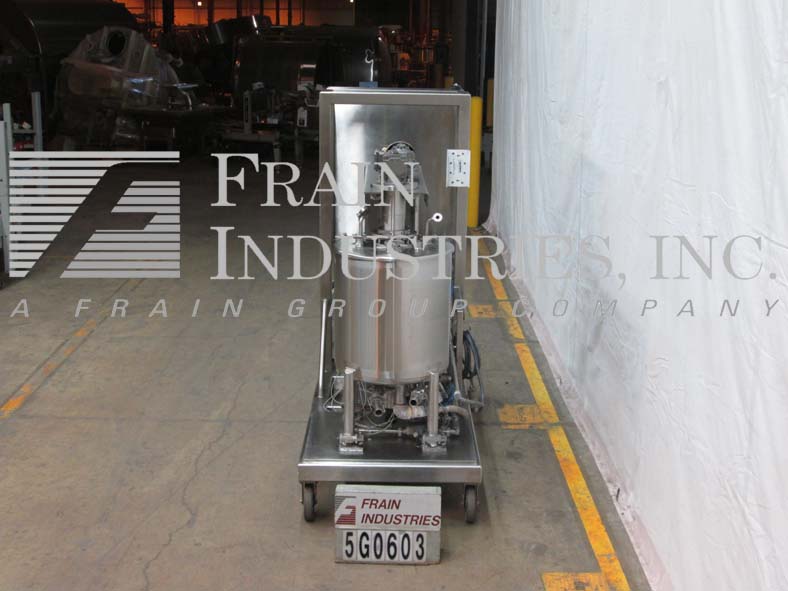 返回所有设备步行者,125升(30加仑),316不锈钢,混合系统。血管尺寸:24英寸直径; 26英寸直墙。压力额定值 - M.A.W.P:14.5 PSI @ 250°F;M.D.M.T:-20°F @ 14.5 PSI。配备顶部中心安装的三个桨式搅拌系统,气动空气过升水系统,带电涌罐,螺栓向下盖,一个3“od tri-三叶草顶部入口,两个2.5”od tri-clover顶部入口,一个3“od tri- 将顶部入口,2个“od夹克入口,盘底和两个2”od Tri-三叶草底部放电,带有空气致动阀门。另外,提供9 kW Mokon Duratherm水温控制系统(最多215°F)到25 GPM @ 25 PSI,A / B PLC和A / B面板视图。安装在带有四个称重电池和脚轮的不锈钢推车上。以太网兼容。