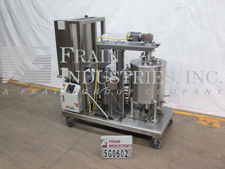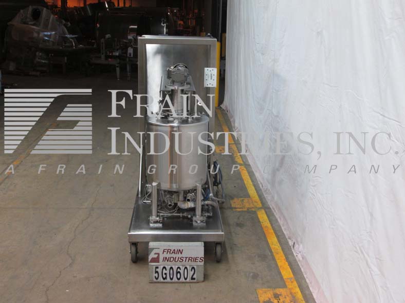 返回所有设备沃克,125升(30加仑),316不锈钢,混合系统。容器尺寸:直径24英寸;26“直墙。压力额定值- M.A.W.P: 14.5 psi @ 250°F;M.D.M.T: -20°F, 14.5 psi。配备一个顶级中心安装三桨搅拌系统,气动空气/油升力系统缓冲槽,螺栓盖,一个3“OD Tri-Clover入口,两个2.5”OD Tri-Clover入口,一个3“OD Tri-Clover顶级进口,2”OD夹克入口,盘底部,和两个2”OD Tri-Clover底部排放与空气驱动阀门。此外,还配备了额定高达25gpm @ 25psi的Mokon Duratherm水温控制系统,a /B PLC和a /B面板视图。安装在一个不锈钢推车与四个称重单元和脚轮。以太网兼容的。