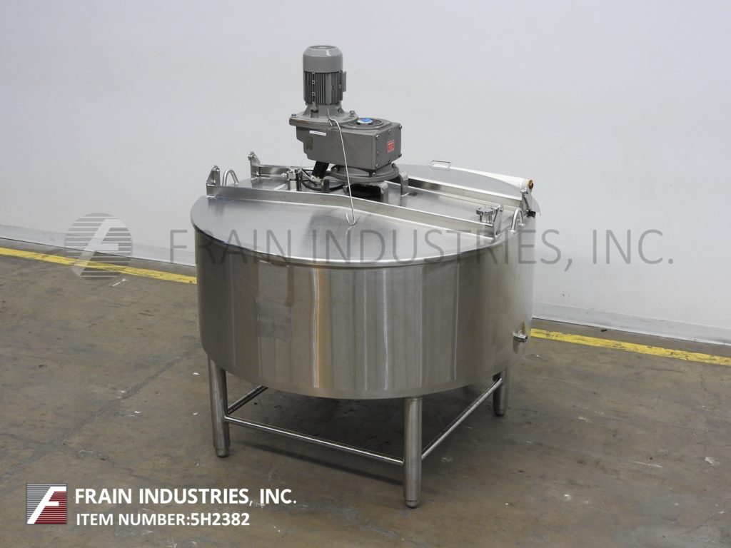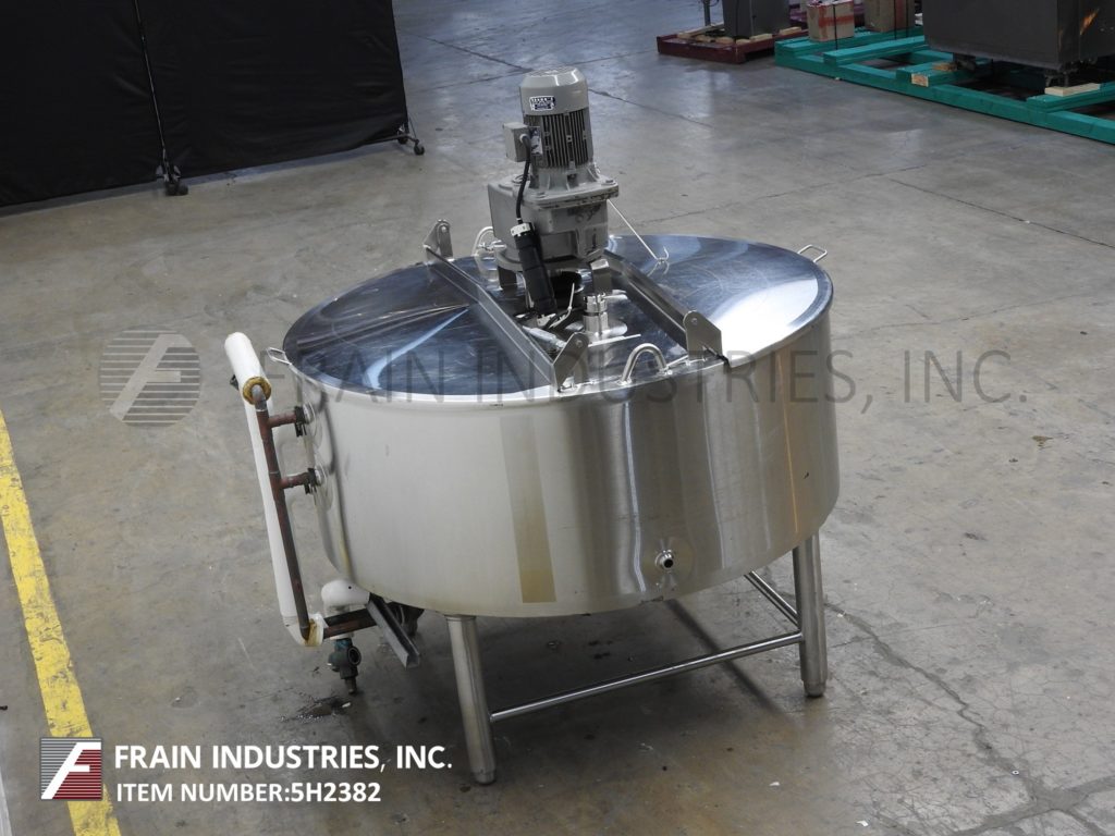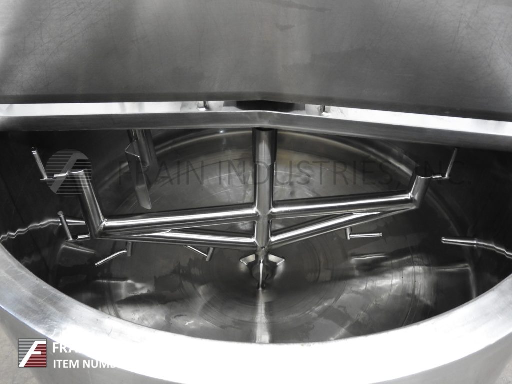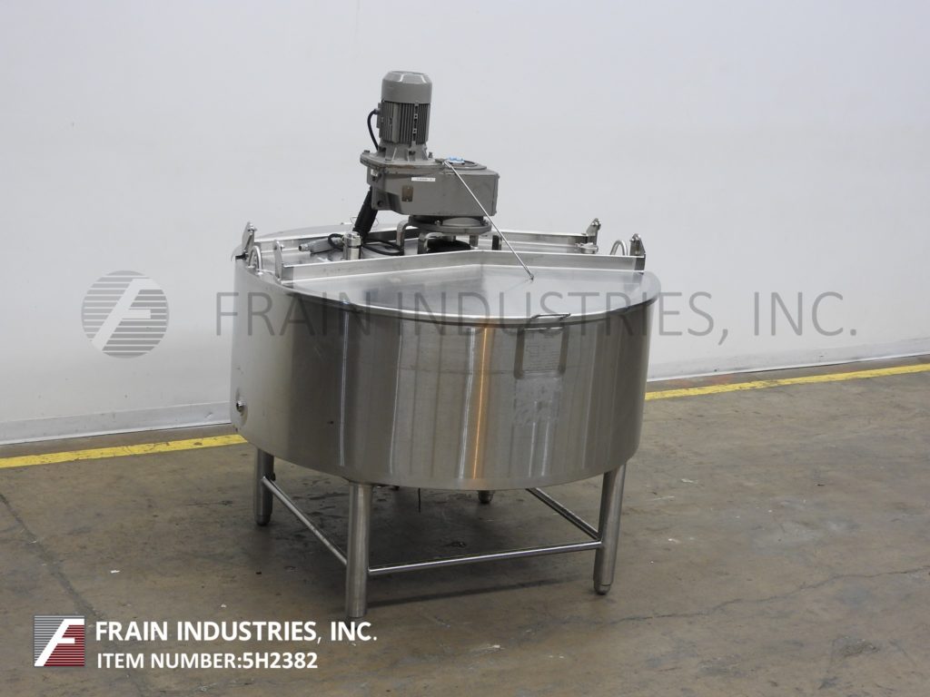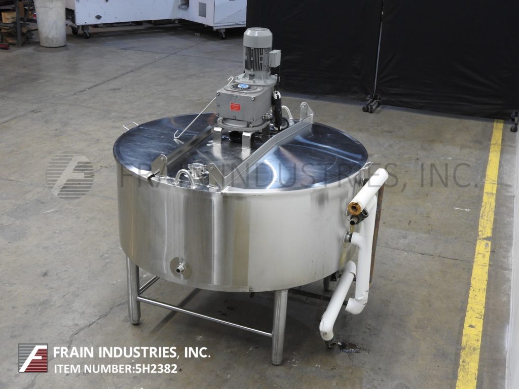 返回所有设备Walker, 200加仑容量,304不锈钢3区夹套工艺罐。容器尺寸:直径54英寸,直壁21英寸。配备升降盖,锥形底部,(2)温度计套管,3/1½Hp顶部安装刮板搅拌器和3½“外径/ 2¾”ID三卡箍式底部排气,地面间隙为15”。