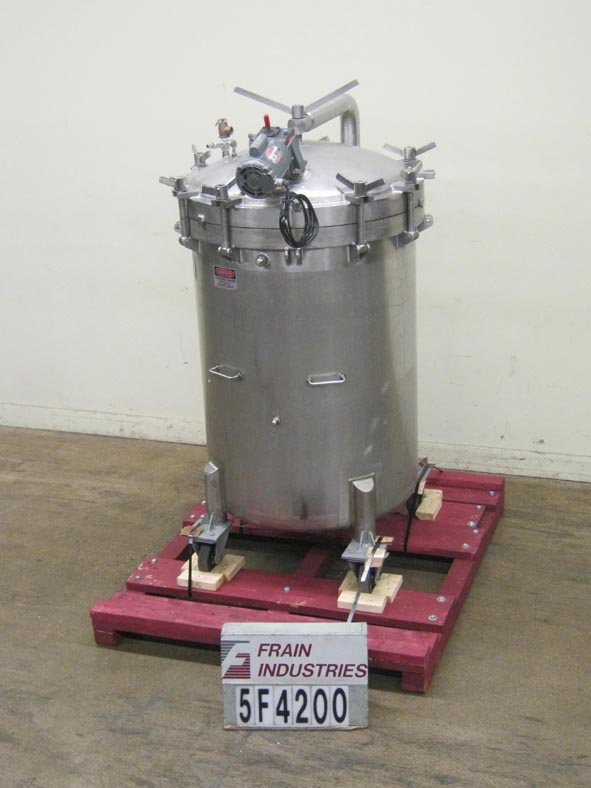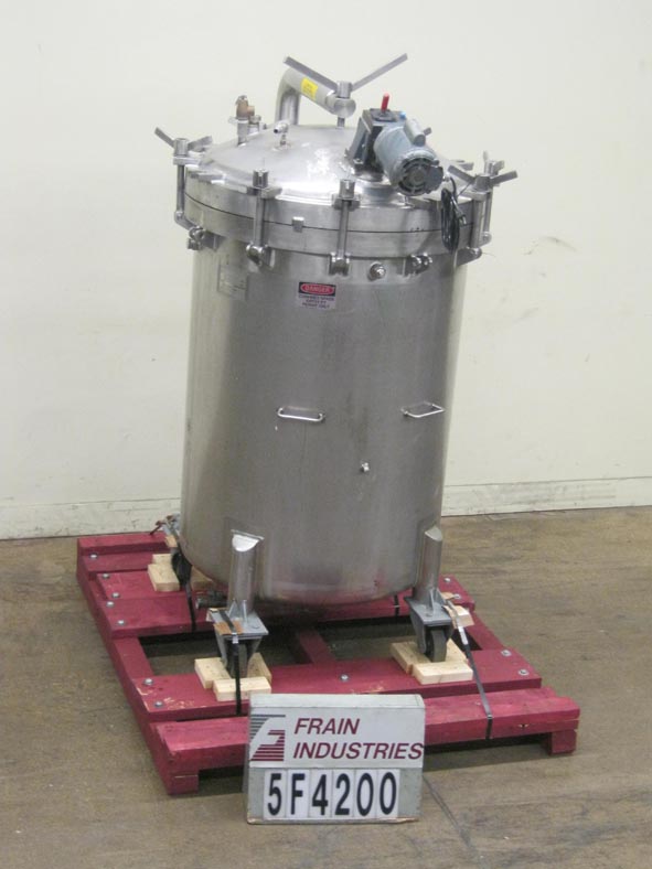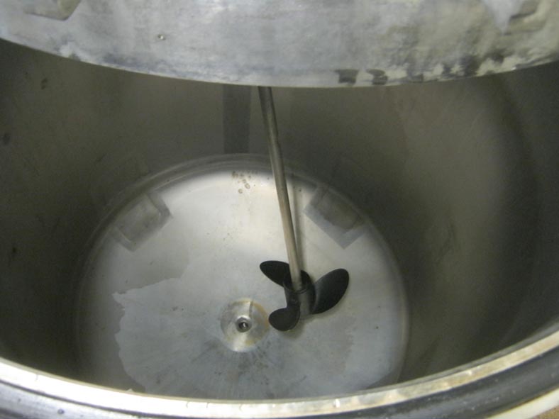 Back to All EquipmentWalker, 200 Gallon, 304 stainless steel, single wall mixing tank. Vessel Dimensions: 36" in Diameter; 48" Straight Wall. Pressure rating: 75 psi internal pressure @ 100° F. Equipped with a bolt down dome top, 2" OD tri-clover inlet, prop mixer, 2" OD jacket inlet / outlets, dish bottom, and 2" OD center bottom discharge. Mounted on casters.