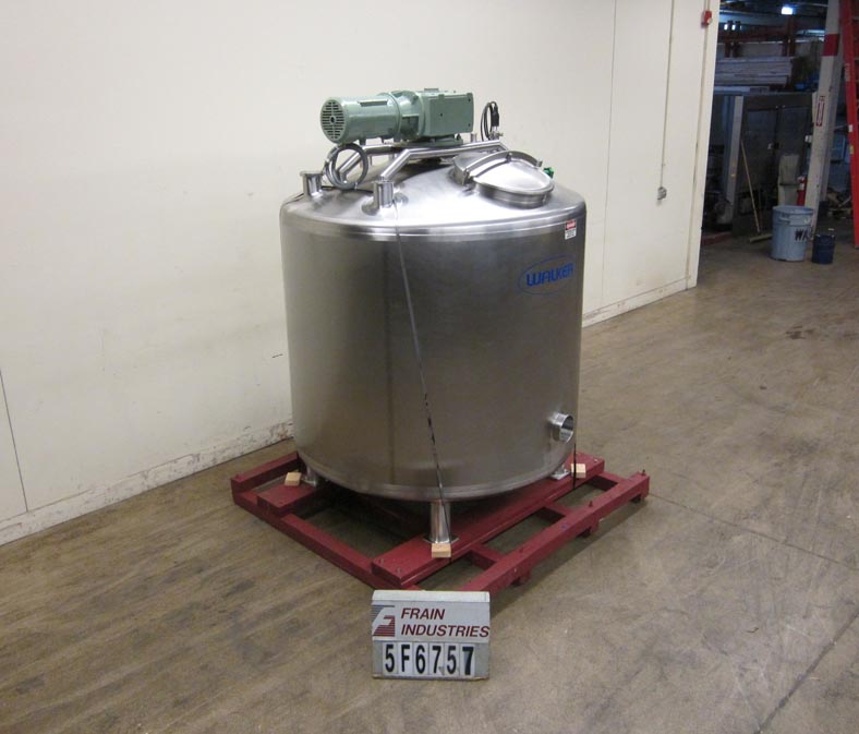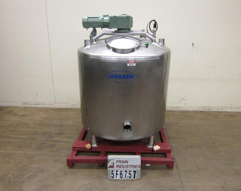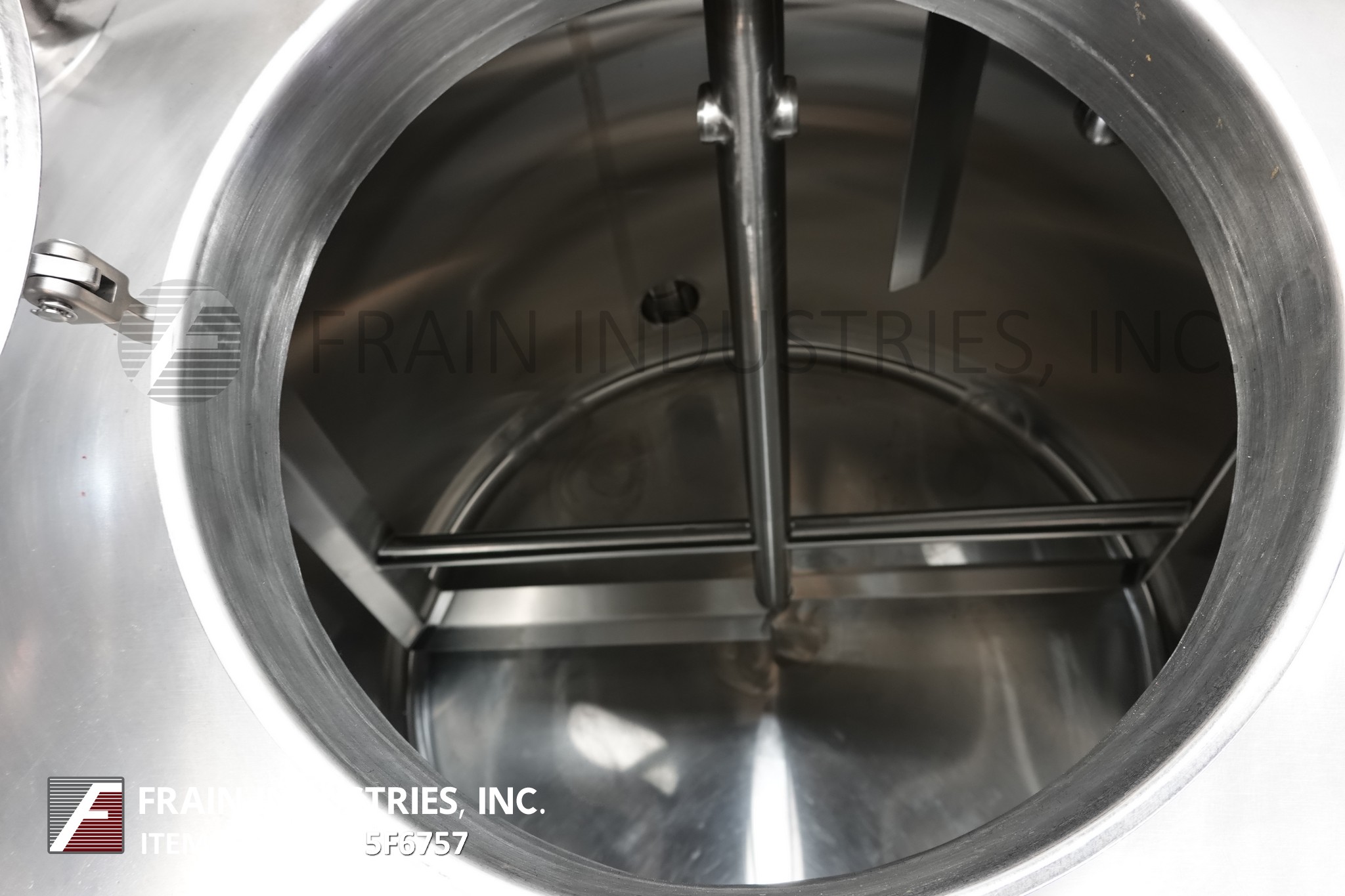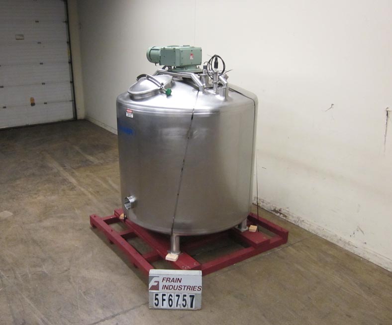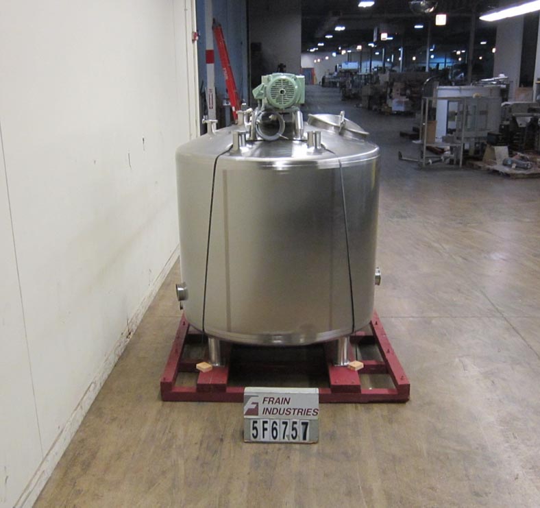 返回所有设备800加仑,单壁,316不锈钢,常压,混合罐。配备60" ID x 58"直壁,圆顶顶部,有19" ID人路翻转,压下盖,桥式侧/底部扫式搅拌器,双CIP喷雾球和温度探头,(5)4"外径(1)3"外径顶部和(2)6-1/2"外径侧卫生端口。斜底3-1/2"外径侧底排放12"地板间隙,安装在(4)不锈钢腿上。
