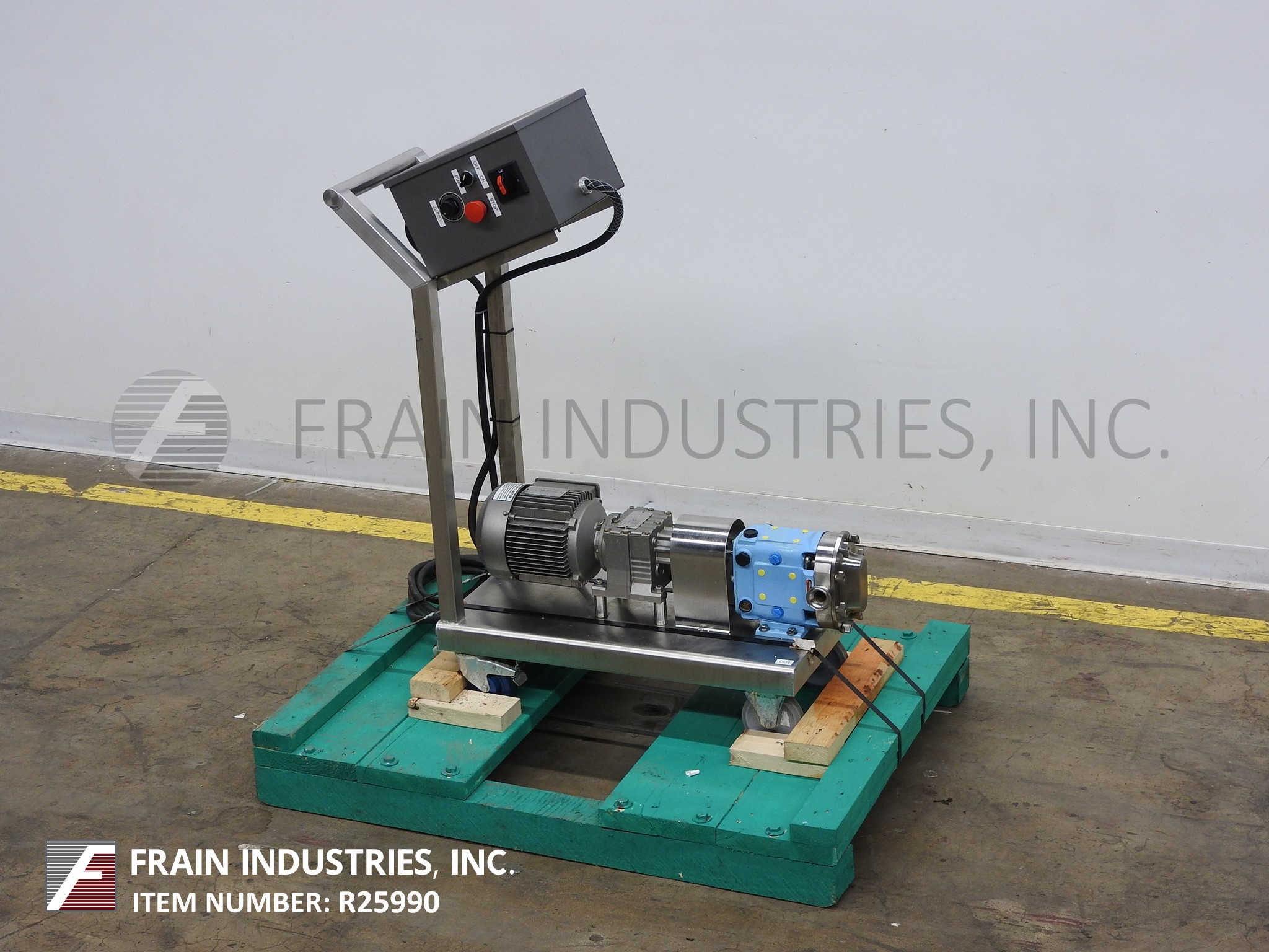 返回所有设备Waukesha型号15DO, 316不锈钢容积泵额定从5到15加仑每分钟-取决于材料和应用。配备1-1/2"外径卫生级进口/出口产品端口,316不锈钢双转子。o形圈密封,可顺时针或逆时针操作,最大工作压力为200psi,温度范围为-40℉至200℉,热间隙转子/定子和viton密封可达300℉。2马力电机驱动,带减速机,带触摸板控制和数字读数的A/C变速控制器。安装不锈钢平台底座和脚轮。