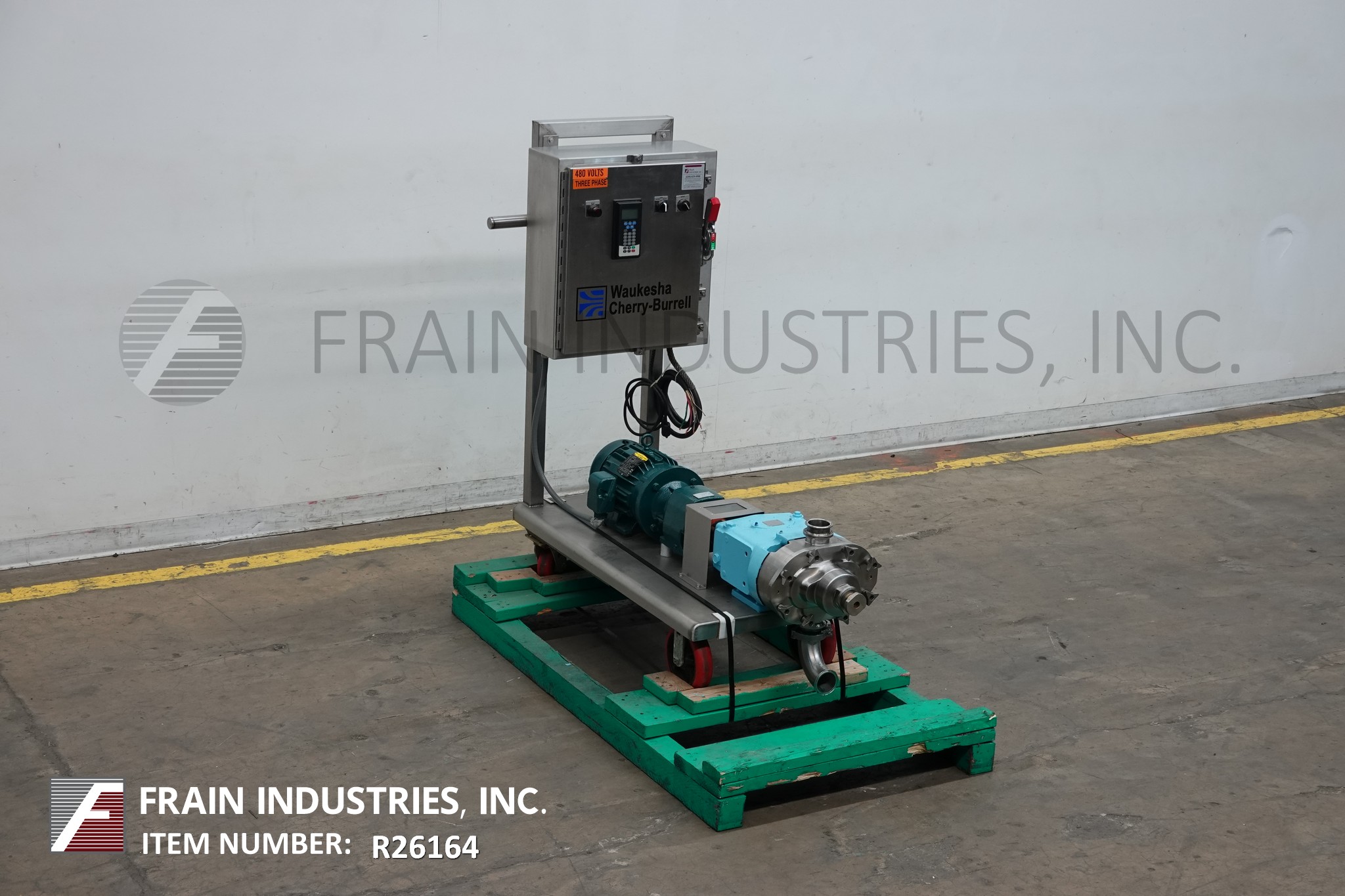 返回所有设备Waukesha,60型,带316不锈钢接触部件的正排量泵。每分钟1至90加仑的产品 - 取决于材料,应用和机器配置。200 PSI最大工作压力,温度范围为-40°F至200°F标准,可达300°F,具有热封转子/定子和Viton密封件,并且能够顺时针操作,或顺时针操作。配备内部通过通过压力阀通风盖,3个“OD /2½”ID Tri-Clamp风格产品充电/放电,10“接地间隙。带AB变速控制器和5.96:1齿轮的5 HP驱动器。最大电流速率为44 Gal / min的比率。安装在44“长x 21”宽不锈钢推车上。