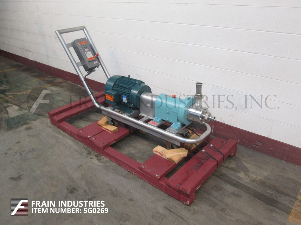 返回所有设备Waukesha型号SP, 316不锈钢,高剪切,容积泵和乳化剂额定从5到30加仑每分钟-取决于材料和应用。配置2”外径顶部和3”外径前卫生在/出口温度范围从0到300华氏度,压力额定值为150 psi。具有模块化,可互换的定子和转子的通用和紧凑的加工。控制面板与启动/停止可变速度控制。安装在60“长x 22”宽的平台式基地与脚轮。