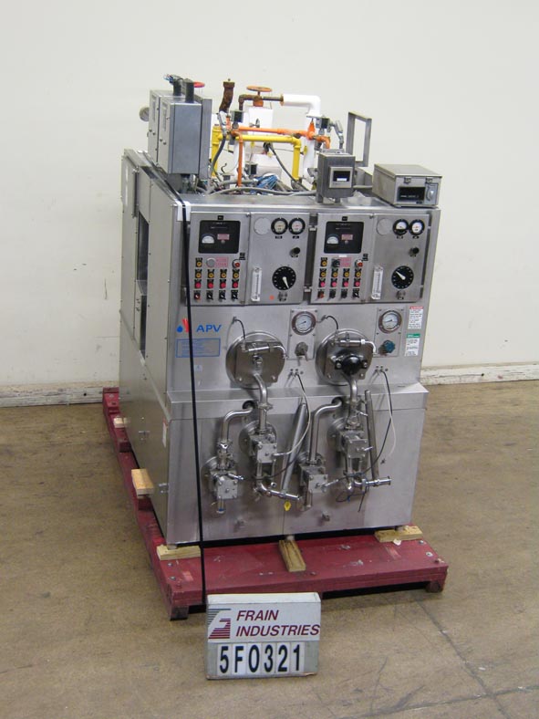 返回所有设备WCB / Anderson,连续,双管,不锈钢,冰淇淋冷冻柜额定高达200加仑/小时的总产量100%空气混合在运行冰淇淋@ 22 Deg F.配备(2)10“OD X 28”那type 30 open dasher freezer cylinders, uses ammonia as refrigerant, (2) mix and two rotary discharge pumps with 1-1/2" OD sanitary infeed / discharge ports. Twin tube controls with dasher, refrigerant, feed / mix pump and liquid slurry controllers, quick shut off valves, dasher motors, freezer and pressure gauges. Mounted on stainless steel frame.