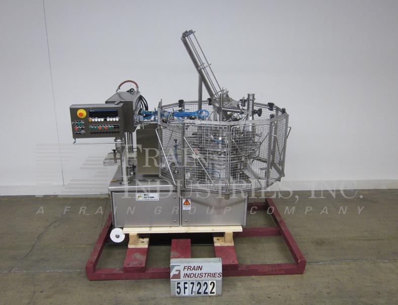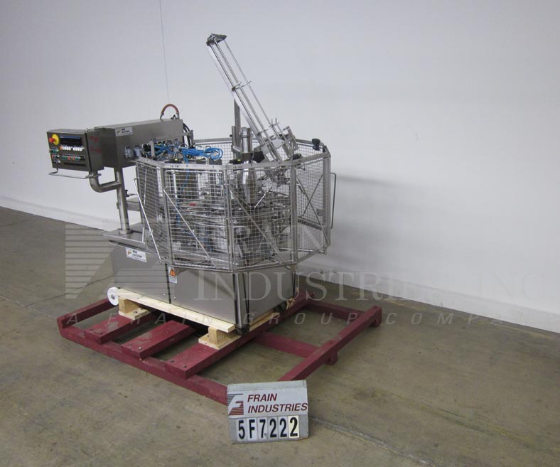 返回所有设备WCB / APV模型RUF、自动间歇运动,不锈钢,扶轮冰淇淋机额定从80年到200年杯或锥和20到每分钟80个容器——取决于材料和应用配备48”长空集装箱杂志,往复式选择n denester, 47“转盘直径有10站,与容器钳子和容量填料从冰淇淋冰柜。控制面板采用PLC控制器和按钮控制,具有读出,电子停止,无箱/无灌装传感器,下卸集装箱输送机和联锁笼式安全防护。