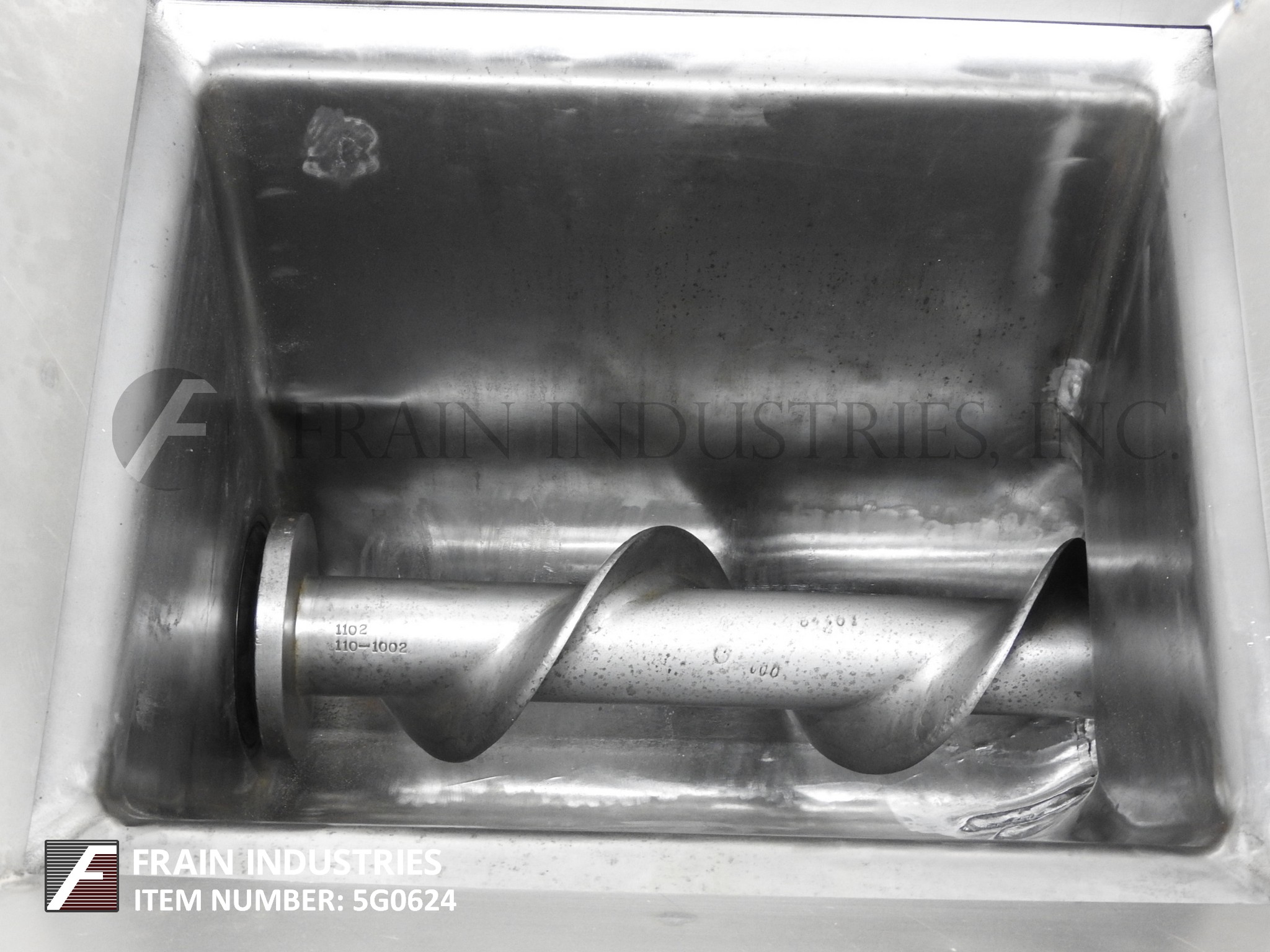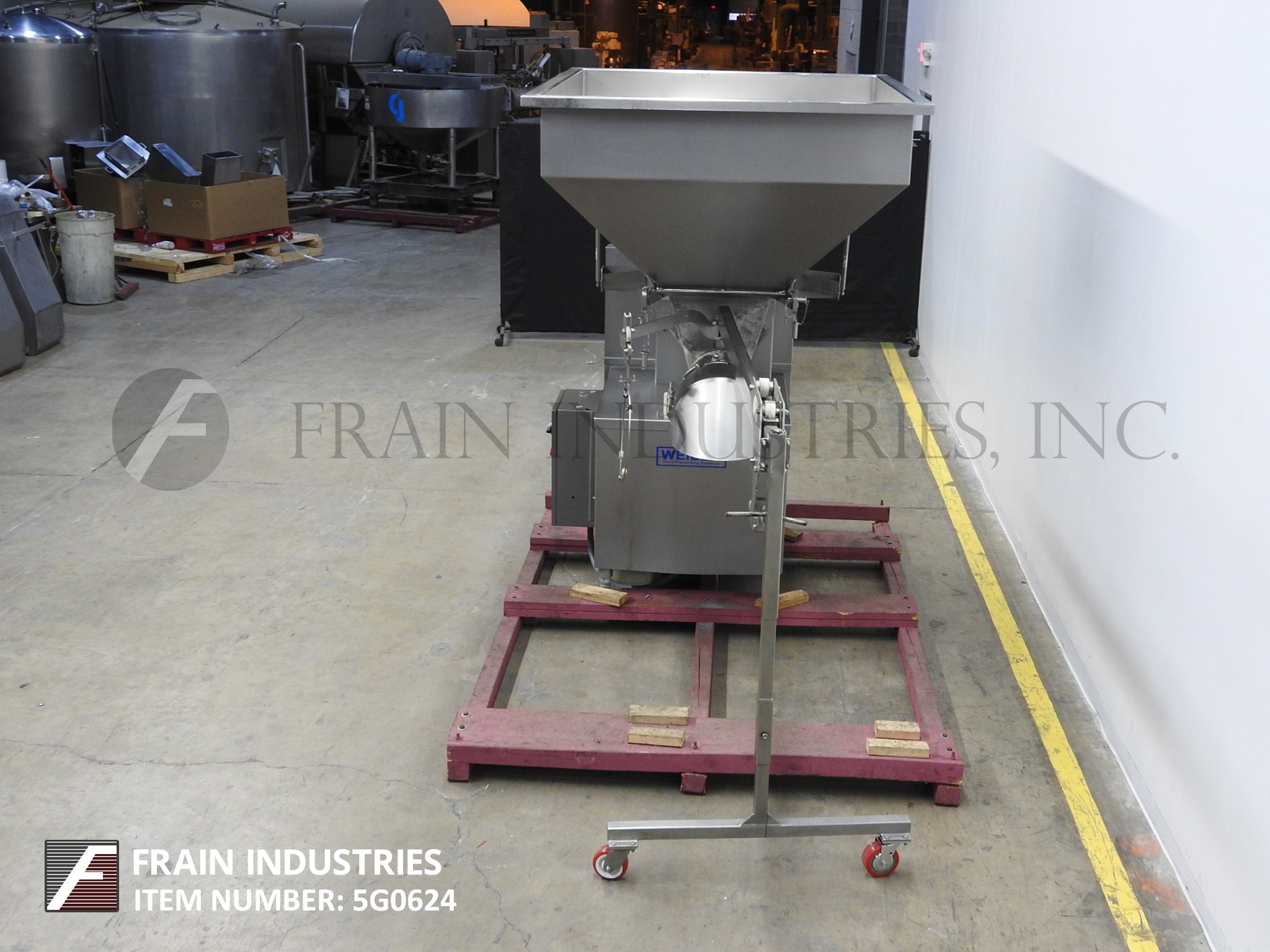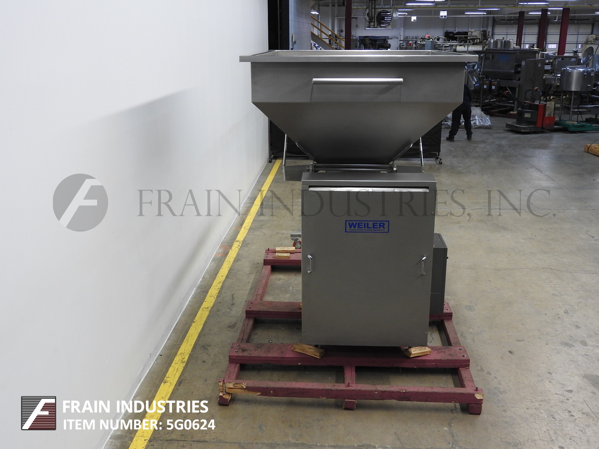 返回所有设备威勒1102型,重型研磨机,每小时可研磨500至24000磅的产品-取决于材料和应用。长度为60英寸;60“宽;36"深度产品料斗,48"长x 7"外径磨削螺钉,10"外径自锐切断刀片和11"外径,10"内径螺纹产品出料口筛架小车,48"地板间隙,50马力电机驱动,启动,停止,和e-stop按钮控制。安装在四个腿的基础框架。用于粗磨以及大多数肉、骨头和脂肪的新鲜和渲染过程。