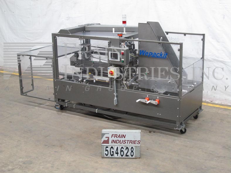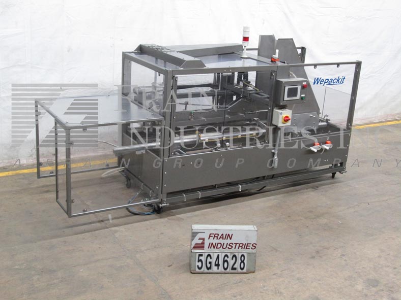 返回所有设备Wepackit型号320E,自动。根据材料、应用和机器配置的不同,额定底部锥度为每分钟5到25个锥度。Case size range: 6" to 22" in Length;宽度为5"至14";深度4.5“至16”。配备34"长x 34"宽的空白盒杂志,气动吸盘选择与侧箱安装,主要和小型的情况下皮瓣关闭器,96"长拖曳顶部和底部的情况转移输送机,手曲柄高度和宽度可调和2"宽磁带头。控制面板有触摸板控制器,带有读出,启动,e-stop按钮控制,状态灯条和联锁安全保护。安装在施法者。