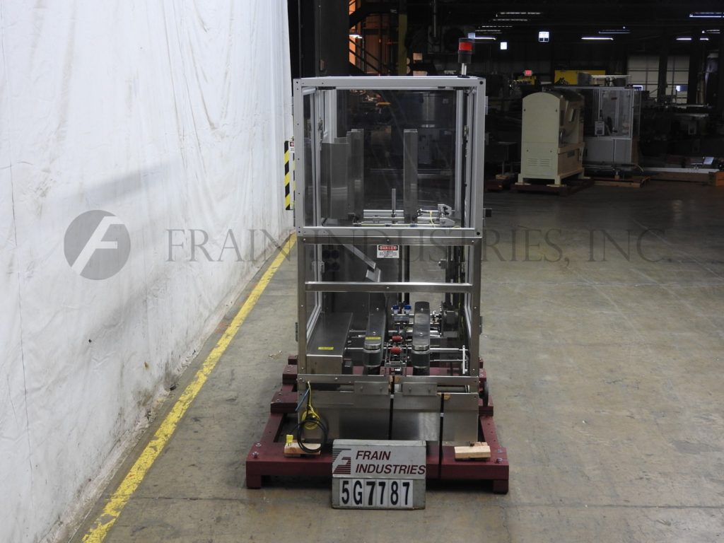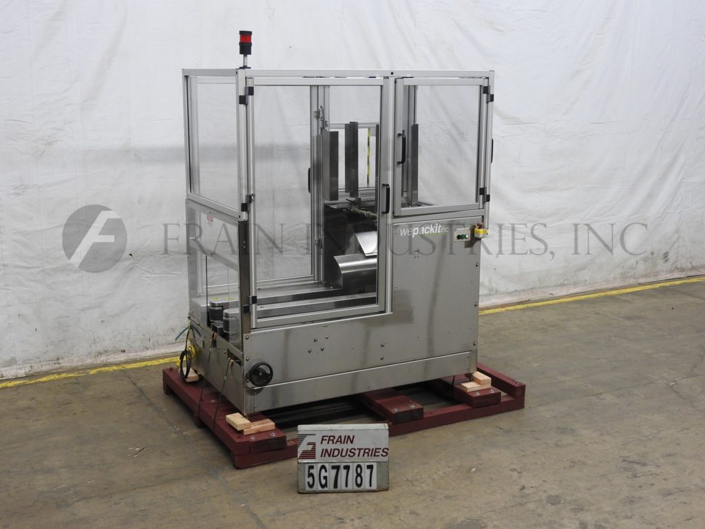 返回所有设备WEPACKIT,型号720xL,自动案例ertector,底锥度。评分为每分钟1至14件案例 - 取决于材料和应用。案例尺寸范围:6“至17”的长度,6至13“宽度; 3”至13“深度(壳体的最大对角线为28”,最大敲低尺寸为34“x 27”)。配有顶部安装的空白盒杂志,单头(2)真空吸杯PIC n竖立空白案例和翻转到次要襟翼侧,46“长x 3”宽侧面盒式框架,主要襟翼近,2“底部胶带头部和翻转安全保护。控制面板具有带开头/电子停止按钮控件的A / B PLC控制器。安装在带脚轮的基架上。