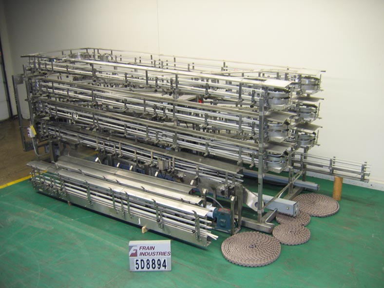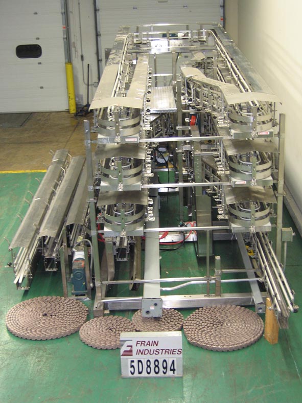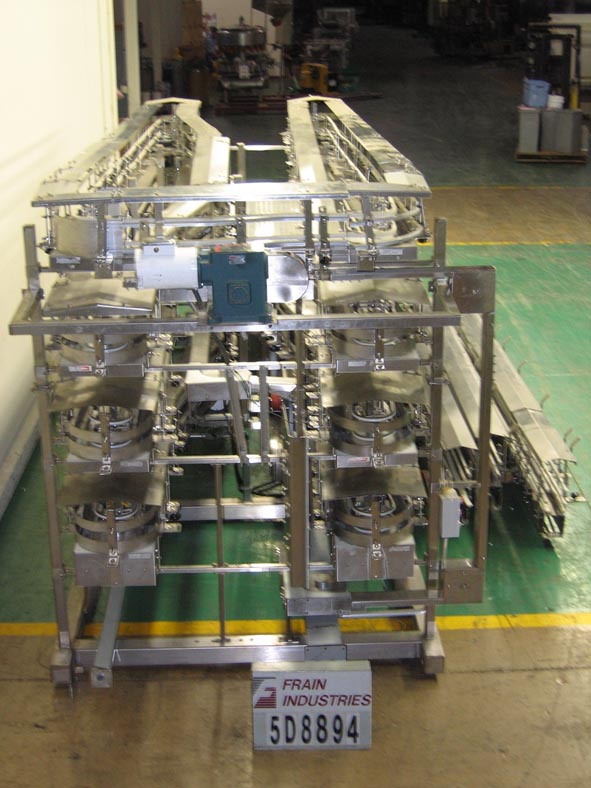 返回所有设备自动输送系统Alphine,不锈钢,桌面输送蓄能260 '积累面积(14 224"长循环)。容器:高达4 1/2“宽x至10 1/2“高。2"宽输送机,22"高进料,22"高卸料,覆盖输送机轨道,光眼容器存在,并定期气动背压停止。安装在不锈钢框架上。