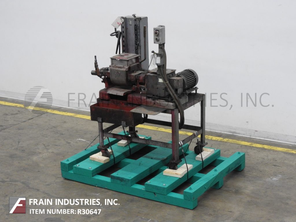 Back to All EquipmentWerner & Pfleider, Model 0.1 ft³ (¾ gallon) working capacity, jacketed, 304 stainless steel, double arm, sigma blade mixer with pounds of product per hour – depending on materials and application. Inner mixing chamber dimensions: 6¾" in Length; 7" in Width; 9" in Depth. Equipped with stainless steel contact parts, 2 Hp motor drive, hand tilt with 31" discharge height and ½" NPT connections for low pressure jacket. Mounted on a painted base frame with push button start / stop controls and forward / reverse switch.
