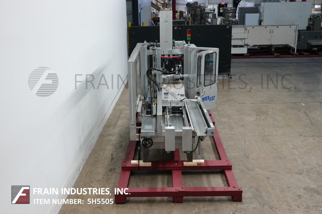 返回所有设备WFH型,全自动,内联箱安装,热熔胶封口机。外壳尺寸范围:6"至24"长度;5"至16-1/2"宽度;3.5英寸到16.5英寸的高度。配备72“长的动力空白盒杂志,销和圆顶的情况下形成系统,小和主要皮瓣关闭,案件推杆,诺德森热熔胶系统,单臂的情况压缩ram和36”长的双侧滚子放电部分。控制面板有A/B CPU,有滑臂,胶水,慢跑,运行,远程需求,启动/关闭开关,停止,e-stop按钮控制与统计灯条和安全防护。速度取决于材料,应用和机器配置。