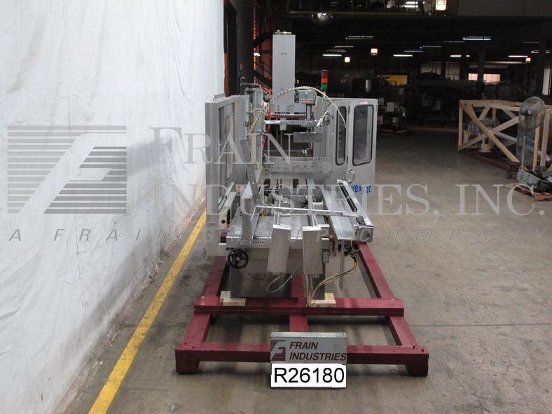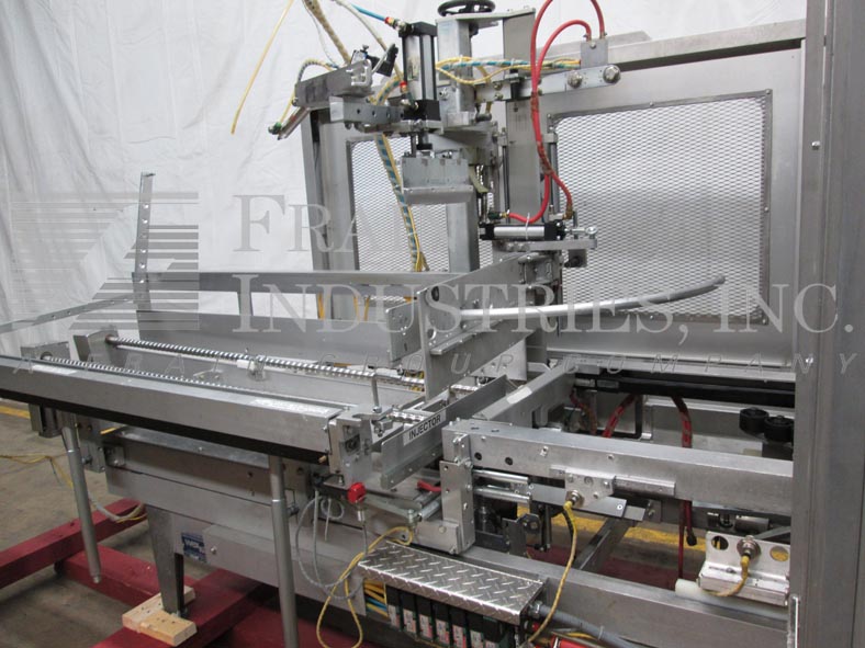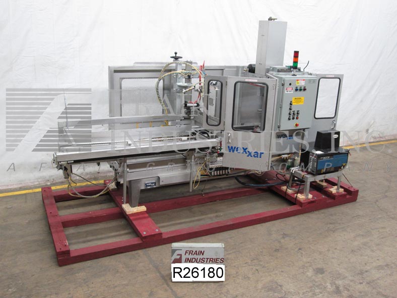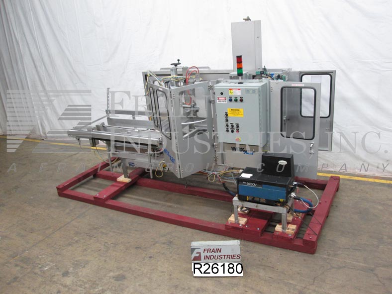 返回所有设备Wexxar型号WFH,自动,内联壳架,底部热熔体胶密封剂。案例尺寸范围:长度为6“至24”;宽度为5“至16-1/2”;3.5“至16.5”高度。配备了72英寸长的空白案例杂志,配方销和圆顶盒形成板,次要和主要的翻盖,Case Pusher Bar,Nordson Hot Melt Glue System,单臂箱壳压缩RAM和36英寸长的双侧辊放电部分。带有A / B CPU的控制面板,具有RAM臂,胶水,慢跑,跑步,远程需求,开 /关开关,启动,停止,E-STOP按钮,Statis Light Bar和安全保护。速度取决于材料,应用和机器配置。