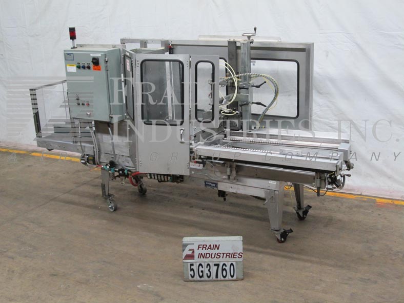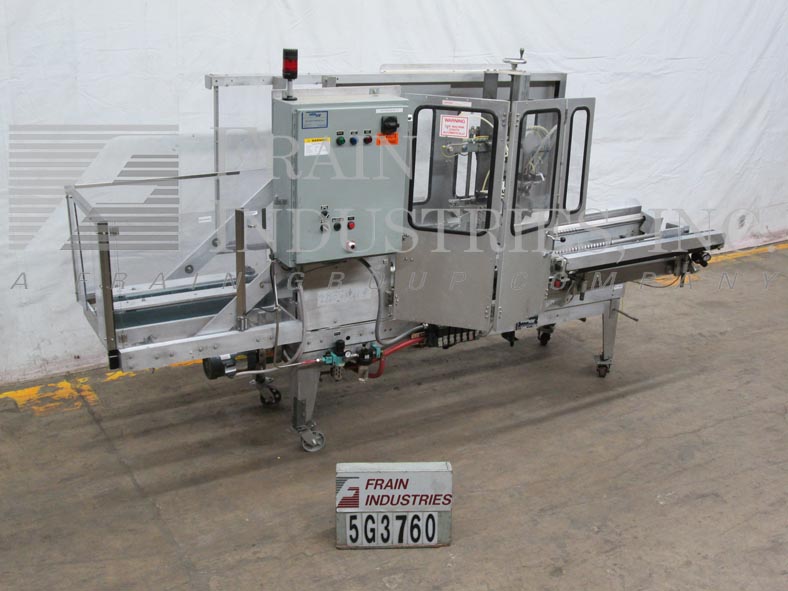 返回所有设备Wexxar型号ABFT,自动,从左到右,底部锥形,底部锥度从每分钟5到25个案例,具体取决于材料和应用。案例尺寸范围:长度为8“至22”;宽度为6“至16”;高4英寸至19英寸。配备了48英寸长的双螺钉,空白案例杂志,销钉和圆顶架架设系统,带有次要和主要的底部平面,Case Pusher Bar,2英寸宽的压力敏感底部胶带头和双重34英寸长x 3”宽曲柄可调节,侧腰带箱传送带。控制面板具有带有跑步,慢跑,打开 /关闭开关的A / B控制器,并启动,停止,E-Stop推动按钮控制,带有statis Light Bar,saftey守卫并安装在带有锁定脚架的(4)腿底架上。