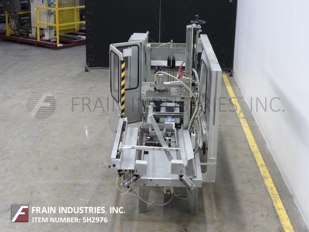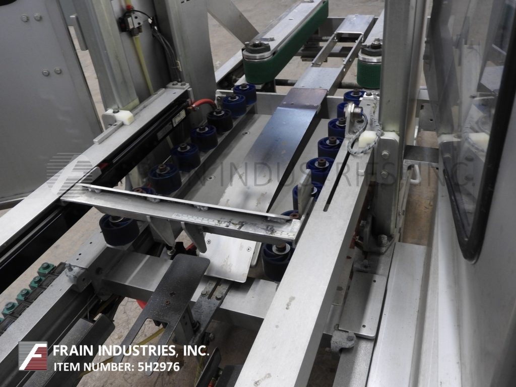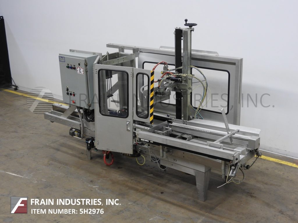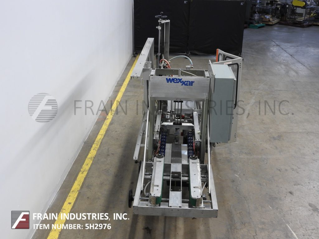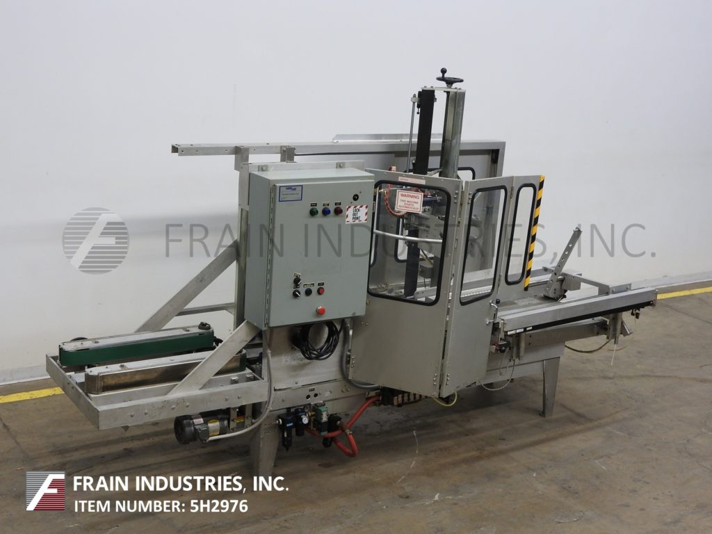 返回所有设备Wexxar, ABFT型,自动,内联箱安装和底部胶带封口机。根据材料、应用和机器配置的不同,额定每分钟5 - 15个病例。Case size range: 8" to 22" in Length;宽度6"至16";身高4英寸到19英寸。配备48"长动力空白盒杂志,往复销和圆壳形成板,小和主要皮瓣关闭,手曲柄高度和宽度可调,案件推杆,2"磁带头和32"长的双侧皮带卸料节。控制面板有A/B PLC和按钮控制慢跑,启动,停止和e-停止。安装在(4)有调平腿的腿架上。