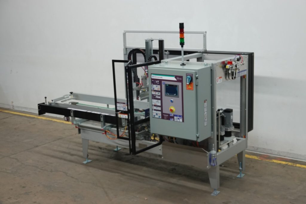 返回所有设备Wexxar, WF30T型,自动,在直线机箱安装,底部胶带封口机。额定从5到30箱每分钟-取决于材料,应用和机器配置。表壳尺寸范围:7-1/4“到18”长度;7-1/4“至14”的宽度;身高6到15英寸。配备72“长(2)带动力空白盒杂志,销和圆顶盒成型板,小和主要皮瓣关闭,盒推杆,2“Dekka翻转磁带头和36“长x 3”宽双侧带放电部分24“至29”放电高度。控制面板有PLC控制器,面板视图触摸屏控制,数字拨号指示灯,电子停止和状态灯条。安装在重型框架上,配有调平腿和安全防护。