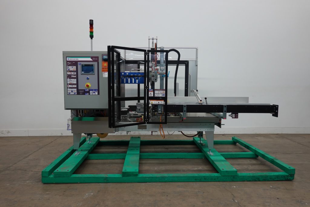 返回所有设备Wexxar, WF30T型,自动,在直线机箱安装,底部胶带封口机。额定从5到30箱每分钟-取决于材料,应用和机器配置。表壳尺寸范围:7-1/4“到18”长度;7-1/4“至14”的宽度;身高6到15英寸。配备72“长(2)带动力空白盒杂志,销和圆顶盒成型板,小和主要皮瓣关闭,盒推杆,2“Dekka翻转磁带头和36“长x 3”宽双侧带放电部分24“至29”放电高度。控制面板上有PLC控制器与面板视图触摸屏控制,数字拨号指示灯,启动和e-stop按钮与状态灯条。安装在重型框架上,配有调平腿和安全防护。