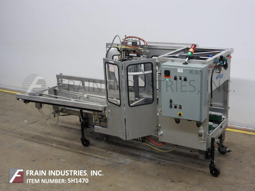 返回所有设备Wexxar,型号WFT,自动,在线壳体竖立器和底部磁带密封件。每分钟5至15件案例 - 取决于材料和应用。案例尺寸范围:长度为6“至24”;宽度为6“至17”;9“至24”深度(翻转)6“至24”的长度;宽度为5“至17”;3.5“至16.5”深度(襟翼下)。配备70“长动力的空白盒杂志,销销和圆顶壳体成型板,次要和主要襟翼近距离,壳体推动杆,2”Dekka磁带带36“长×3”高双侧带排出部分。手曲柄高度和宽度可调。控制面板具有A / B控制器,带按钮控制,用于慢跑,启动,停止和e-stop和Statis Light Bar。 Mounted on (4) leg base frame with safety guarding and casters.