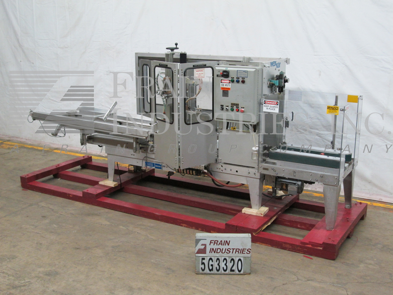 返回所有设备WFT,自动,右手,销和圆顶外壳安装,底部锥度额定为每分钟5至15个外壳-取决于材料,应用和机器配置。外壳尺寸范围:6"至24"长度;宽度为5"至17";深度3-1/2”到16-1/2”。配备72"长动力双螺杆空白盒杂志,销和圆顶盒安装系统,小和大襟翼关闭器,案件推杆,2"底磁带头34"长x 3"宽边双盒辅助皮带输送机和联锁安全防护。控制面板有A/B控制器,具有启动、停止和e-stop功能。