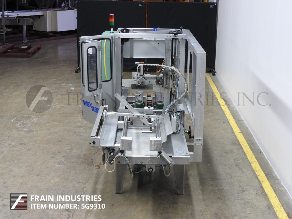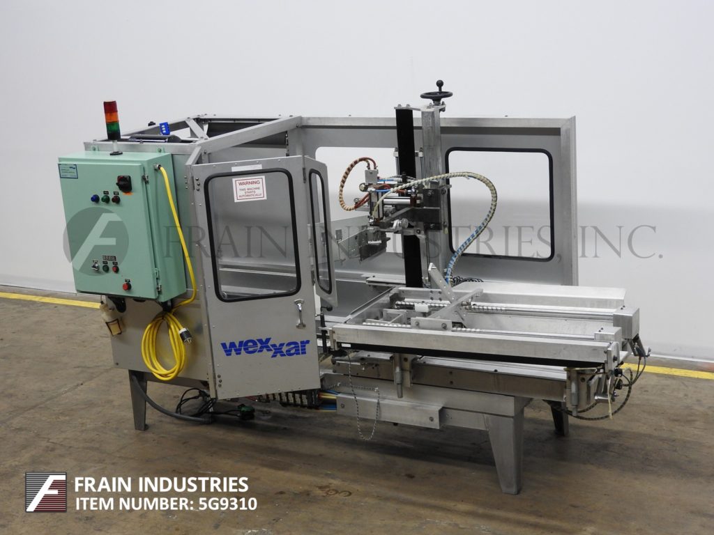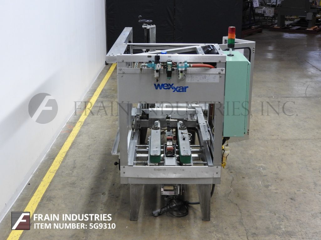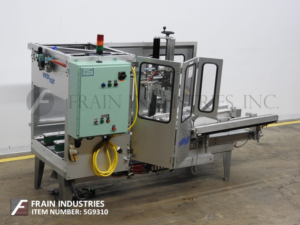 返回所有设备WEXXAR,型号WFT,自动,PIN和圆顶,案例竖立,底锥度。每分钟5至15例 - 取决于材料,应用和机器配置。案例尺寸范围:长度为7“至24”;宽度为5“至17”;5“至12”高度。配备48英寸长,动力双螺钉空白盒杂志,销钉和圆顶壳体架设系统,32英寸长x 3“宽双案暗示传送带,2”底部磁带头和手曲柄可调。控制面板具有A / B控制器,启动,停止和电子停止按钮控制和联锁安全防护。安装在(4)腿基架上,高度可调腿。