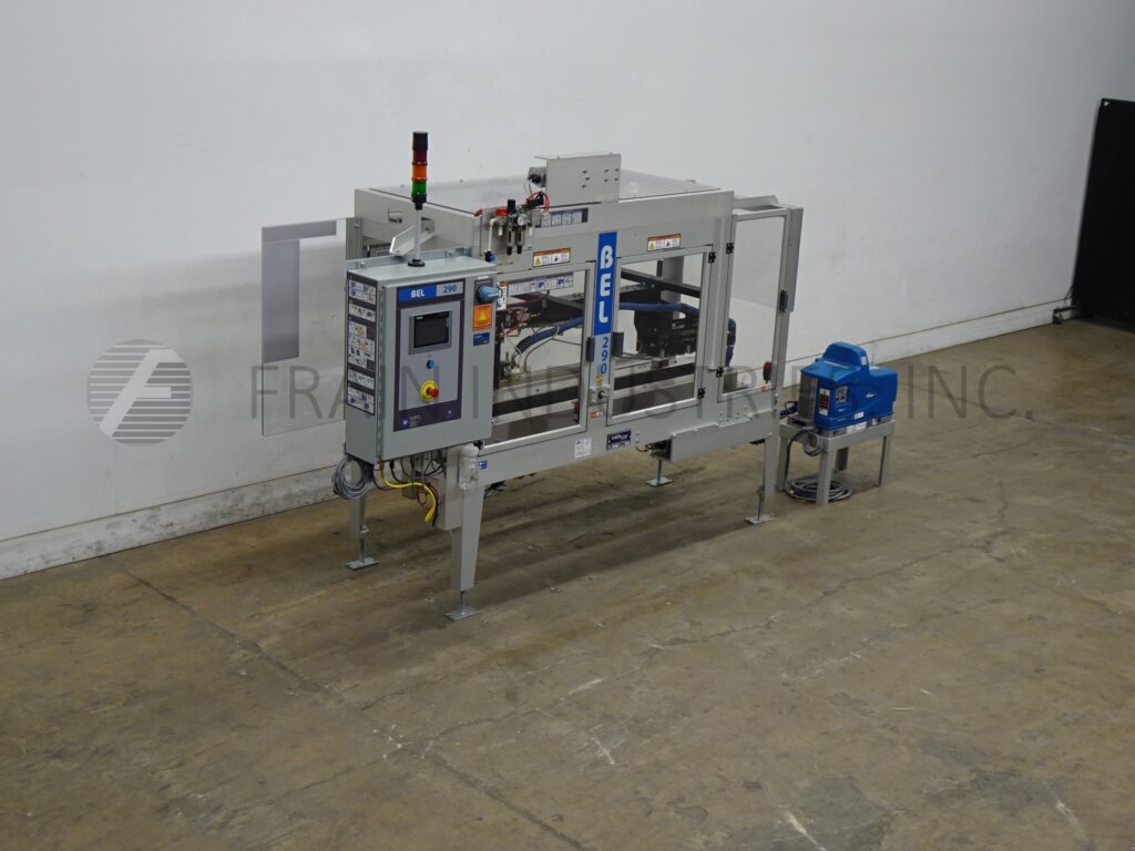 Back to All EquipmentWexxar, Model 290H, Automatic, uniform, top closer and hot melt case sealer. Rated from 5 to 50 case per minute – depending on materials and application. Case size range: 8" to 24" in Lenght x 5¼" to 17½" in Width x 5" to 19" in Height. Equipped with (2) 76" long x 3" high side case transfer belts and Nordson ProBlue hot melt glue system. Control panel with touch screen HMI and e-stop. Mounted on heavy duty frame with height adjustable leveling legs and safety door guarding.