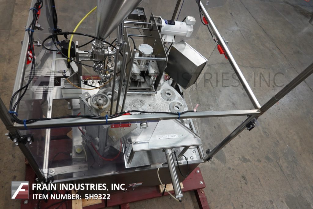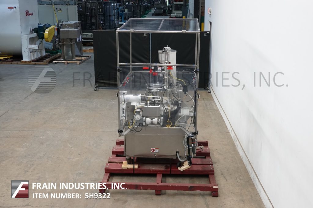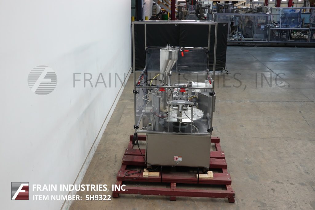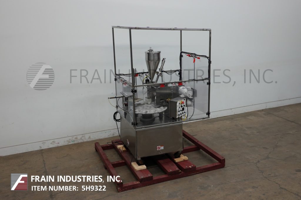 回到所有设备世界杯型号12-32,自动,不锈钢,12个口袋旋转杯填料,卷股涂抹器,每分钟杯子上的热封器 - 取决于材料和应用。容器尺寸:高达4-3 / 4“OD。填充范围:1盎司至32盎司。两者都有适当的变化部件。配备30”旋转台,拥有(12)1-1 / 2“ID杯口袋“带24”长空杯子杂志,12“ID X 24”深度产品料斗,3/4“OD正切割喷嘴,底部填充,没有容器/无填充,卷卷材薄膜和热封站,RAM手臂拒绝。控制面板具有PLC控制器,带填料,封口机,加热器和滴管开关开关表慢跑停止运行开关,Vari-Speed拨号和温度热控制器,带有启动,反向和e-STOP按钮。安装在不锈钢框架上,带脚跟和互锁安全保护。更换适应尺寸和填充范围所需的部件。