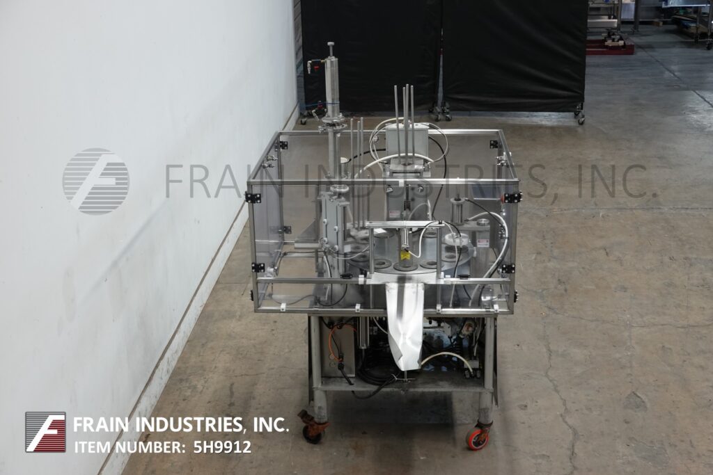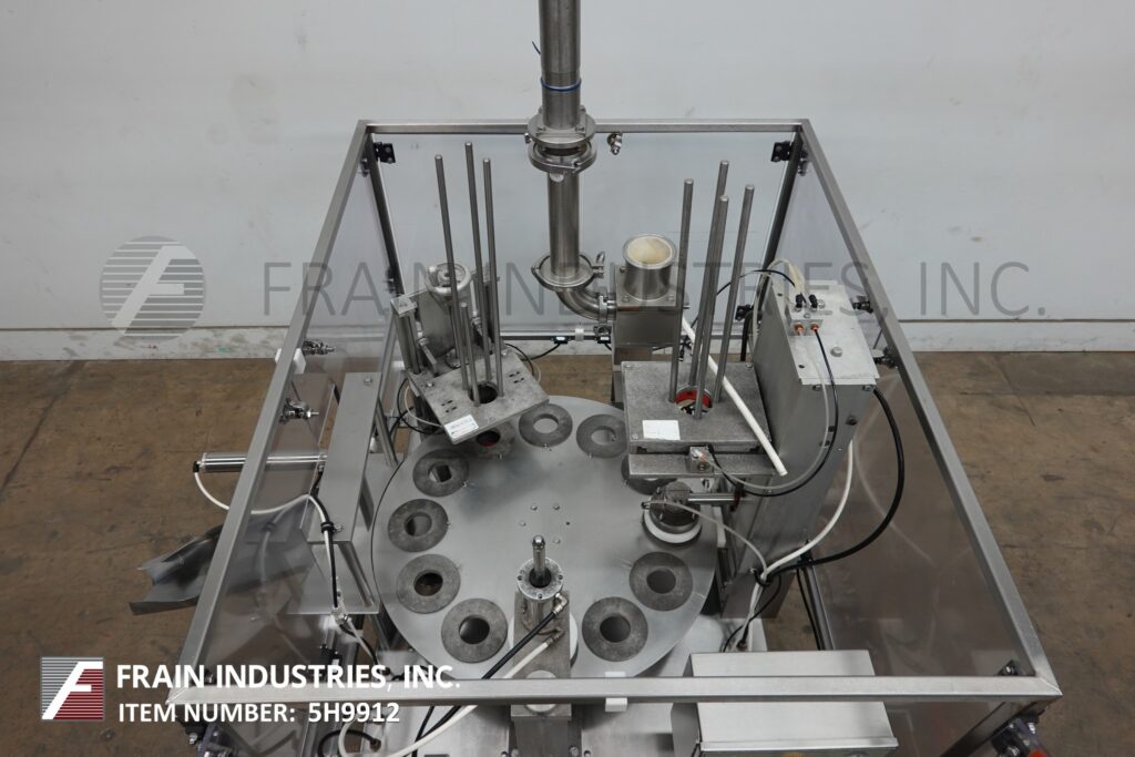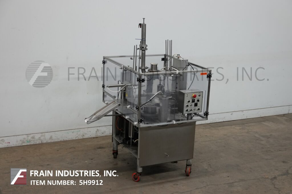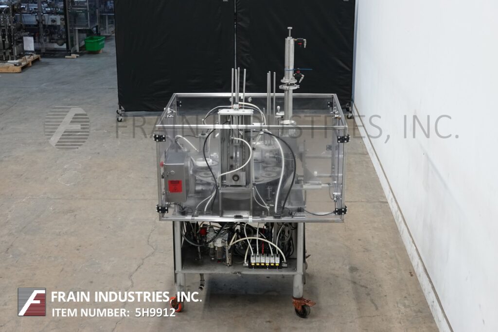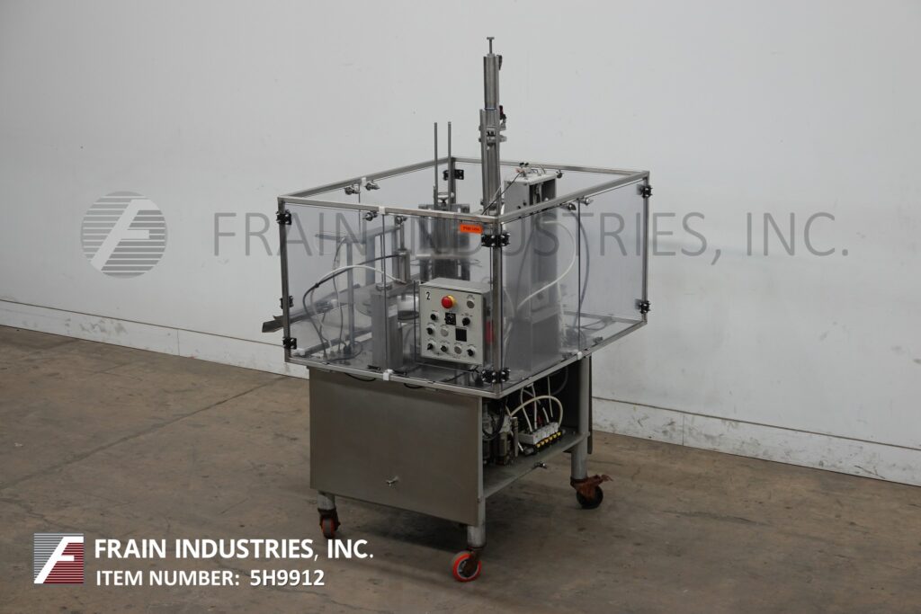 返回所有设备世界杯,型号12-32,自动,不锈钢,12个口袋旋转杯灌装和超过lider与数量杯每分钟-取决于材料和应用。灌装范围:1盎司至32盎司。容器尺寸达:4¾“直径。配备30“旋转转台,24”杯magazine与拉下杯denester,活塞填充器,底部向上灌装,无容器/无灌装,盖上喷头和扫臂拒绝。控制面板上有A/B控制器,有滴管、填充器、自底向上填充器和滑块开关。变速控制表盘和电子停止。安装在不锈钢框架与脚轮。