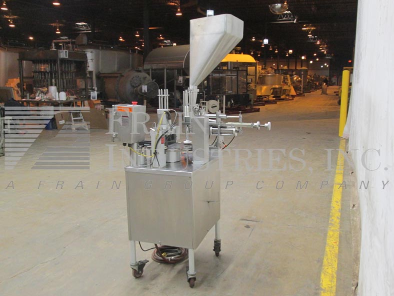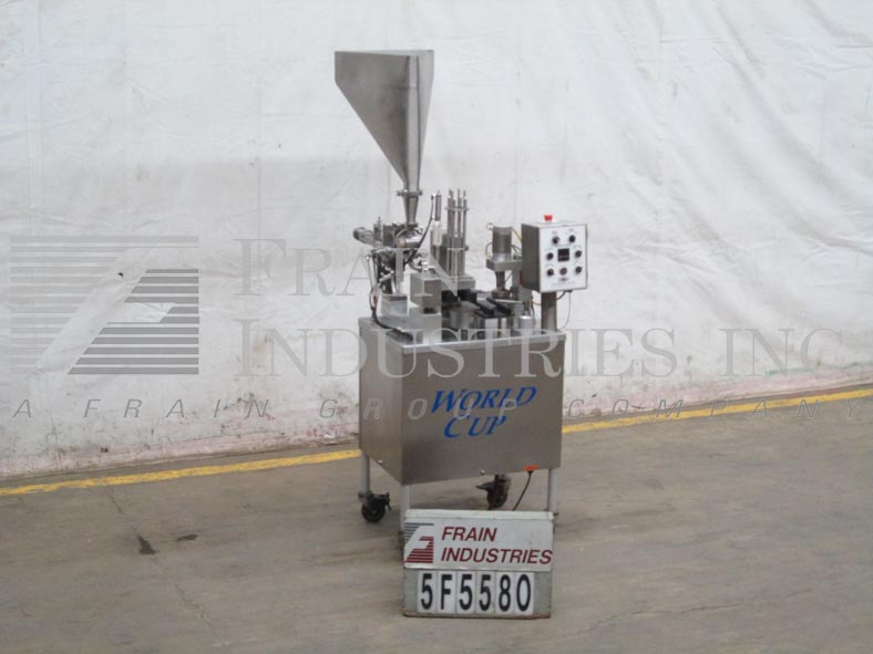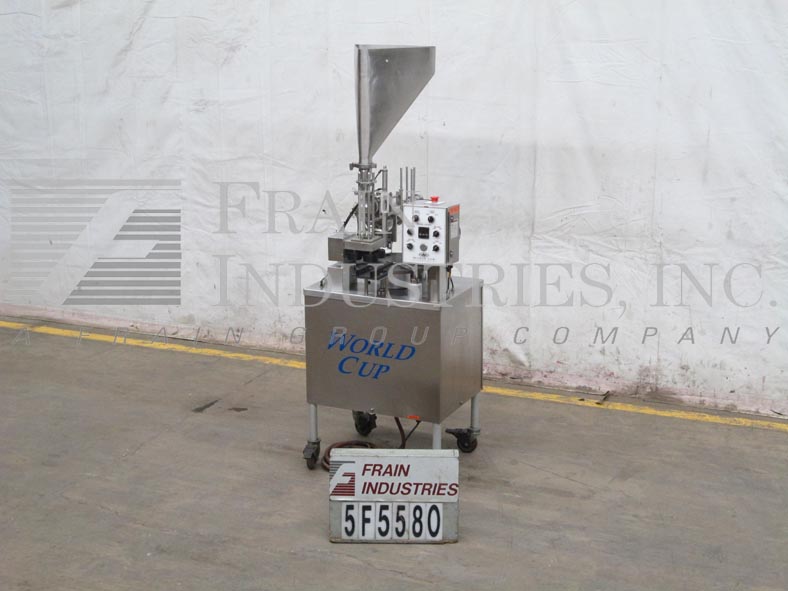 返回所有设备世界杯8-12型自动、8袋、间歇运动、不锈钢旋转杯填料、预切热封胶,额定速度为每分钟8到45杯,具体取决于材料和应用。填充范围:1/4盎司至8盎司。容器尺寸:直径3.18英寸。配备外径为14-1/2“的旋转转盘,内径为11”x 24”长的产品料斗,(4)带双螺杆杯形分离器的杯形旋转料斗,PD填料,正切喷嘴,带图片n位置的预切箔盖料斗,气动热封头和扫臂拒收A/B控制器具有控制面板,带有填充、箔、加热、,带有温度控制器和急停装置的工作台和点动开/关开关,安装在带脚轮的不锈钢底座上。