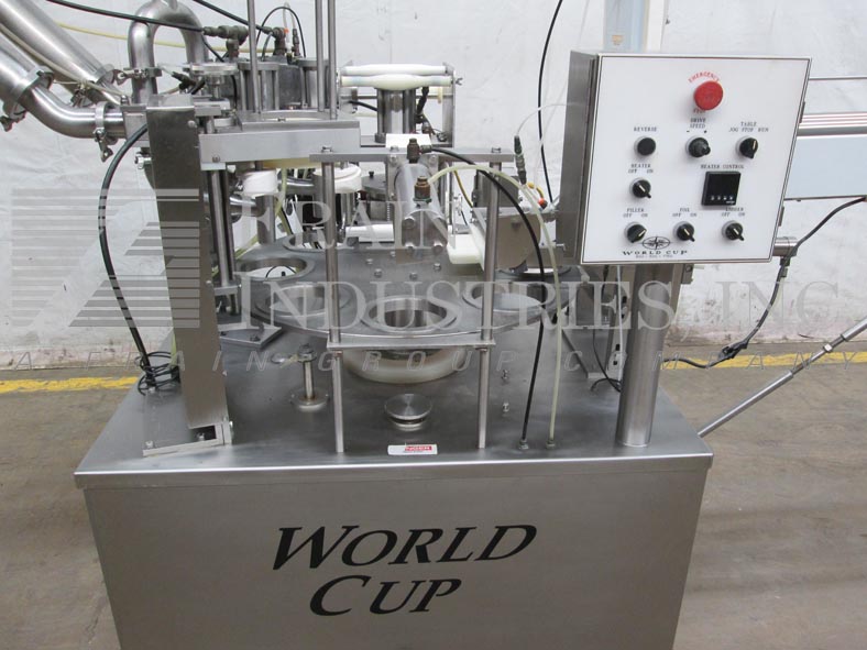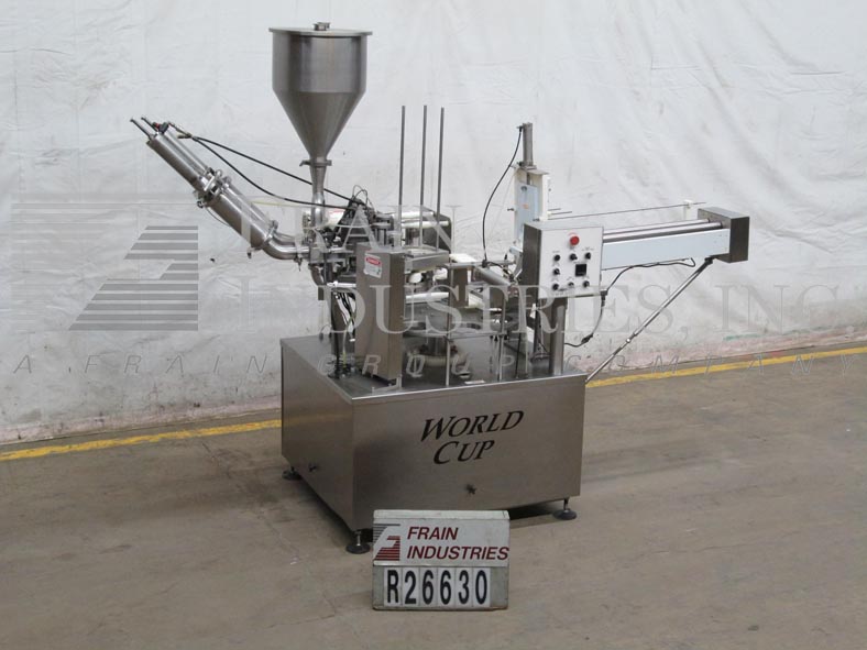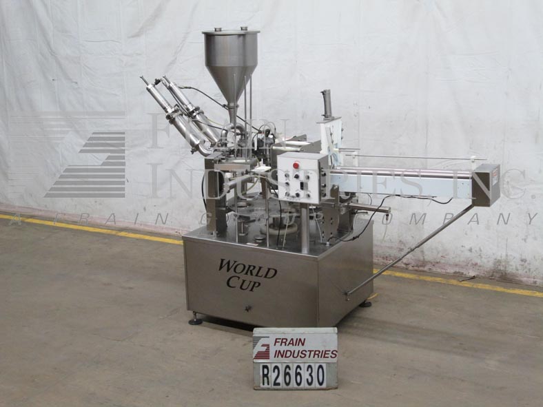 返回所有设备世界杯,8-80型,自动,8口袋,间歇运动,不锈钢,旋转杯填料和卷料薄膜热封口机。填充范围:高达80盎司。容器尺寸高达:6.5英寸直径。配备30"旋转转台,16" ID x 22"深产品料斗,24"杯杂志与螺丝杯denester,活塞填料,积极切断喷嘴,卷料薄膜,气动热封头,40"长滚轴盖杂志,超过lider和扫臂拒绝。A/B控制器有控制面板与填充,箔,热,表,lider和jog on / off开关与温度控制器和e-stop。
