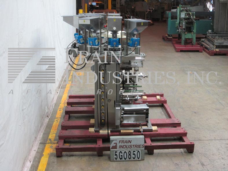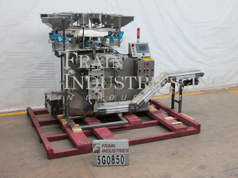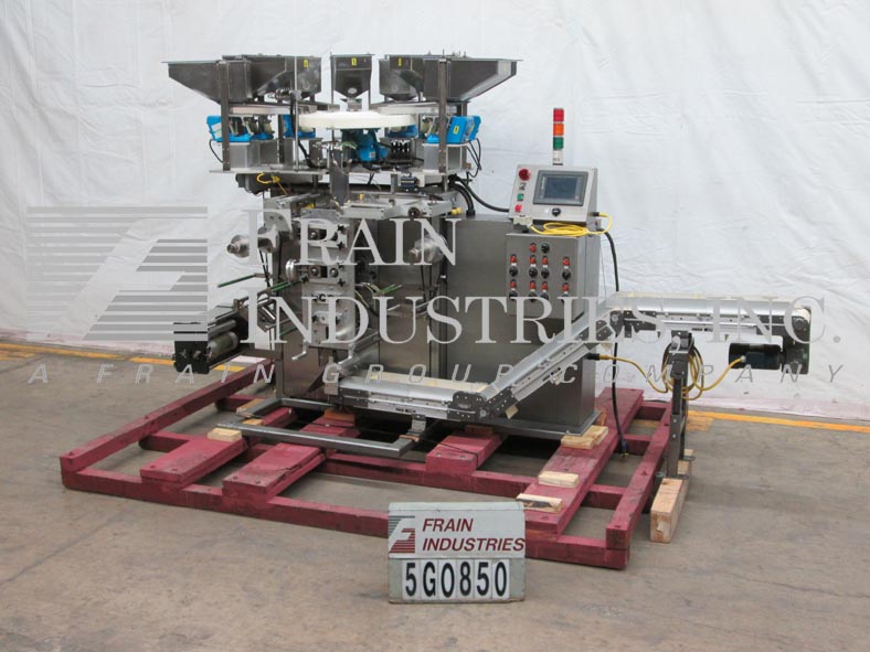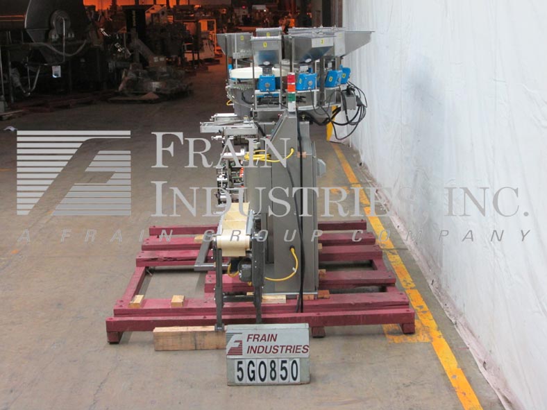 返回所有设备包装模型Compack VSP,垂直,4面密封,条带包装机评级为8至100件产品每分钟 - 取决于材料,应用,包装尺寸,每包和机器配置。封装尺寸范围:1“至12”的宽度:1“至12”的长度和最大薄膜宽度为12英寸,具有适当的变化零件。配备8个振动产品料斗和带有低级传感器的车道进纸器,8个轨道盘产品分拣机使用传感器,双胶卷架用12英寸宽膜辊,胶片配准,孔冲孔和低薄膜传感器。旋转切片刀片,伺服驱动刀具,目前与双单腔交叉和侧脱模和封口机设置。控制面板具有A / B PLC,带面板视图和触摸板控制器和振动进纸器控制,带快速拨号,Statis Light Bar和E-STOP。倾斜的凝块排放输送机具有6英寸的宽带,具有2-1 / 2“高夹板,设置在12”中心和36“排放高度。