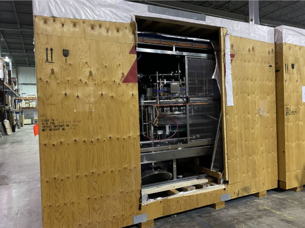 回到所有设备Zacmi /大湖泊食品,型号023-B-40,自动,不锈钢,40头旋转体积伸缩袋填充物,每分钟容器数 - 取决于材料,应用和机器配置。所有不锈钢结构专为填充固体颗粒,如各种蔬菜,豌豆,豆类等,粒径高达15mm x 15mm x 15mm。对于任何解冻或I.Q.F的温度范围为44摄氏度(7摄氏度)至203℃(95摄氏度)。产品和填充变化取决于产品(如粒度,密度,温度和水分含量)以及产品质量和饲料产品在产品罐中恒定水平的能力。每个应用程序的容器尺寸。配备64个“od桌子”,拥有(40)3“x 1-1 / 2”伸缩式填充头,设置在6“中心,架空送料系统和没有容器/无填充。控制面板具有带PanelView的A / B摆臂控制器,并启动,停止,重置和e-STOP按钮控制,安装在带有笼式互动安全防护的重型不锈钢框架上。